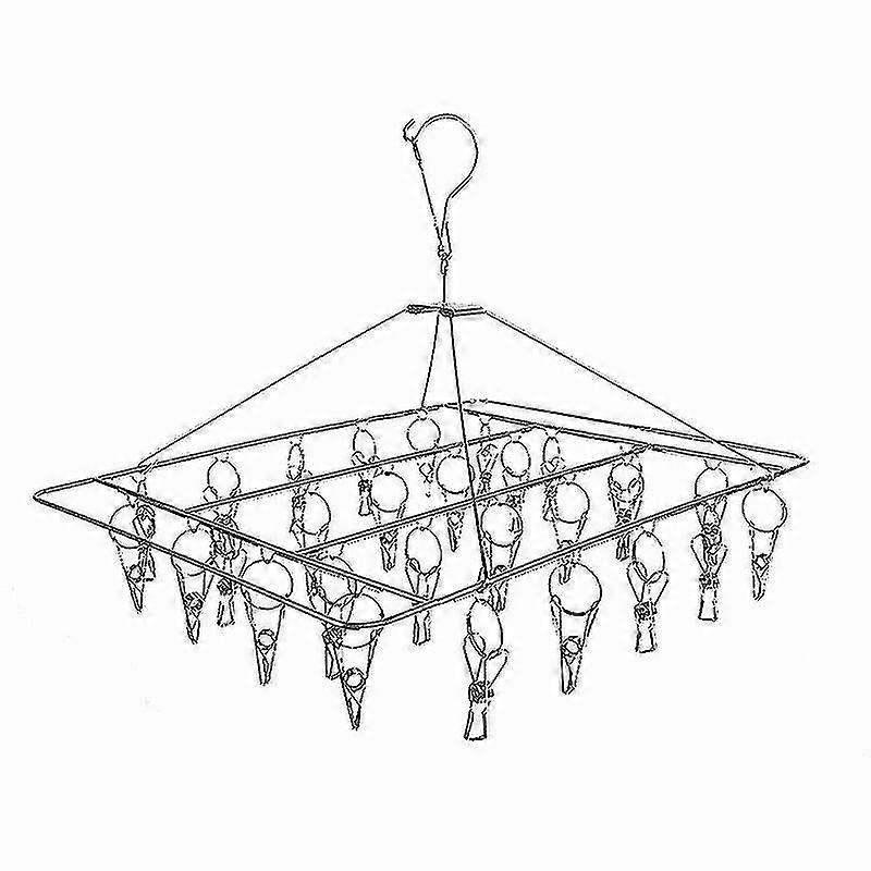 Stainless Steel Sock Drying Rack With 36 Clips, Swivel Hook Wind-proof Clothes Hanger Rack