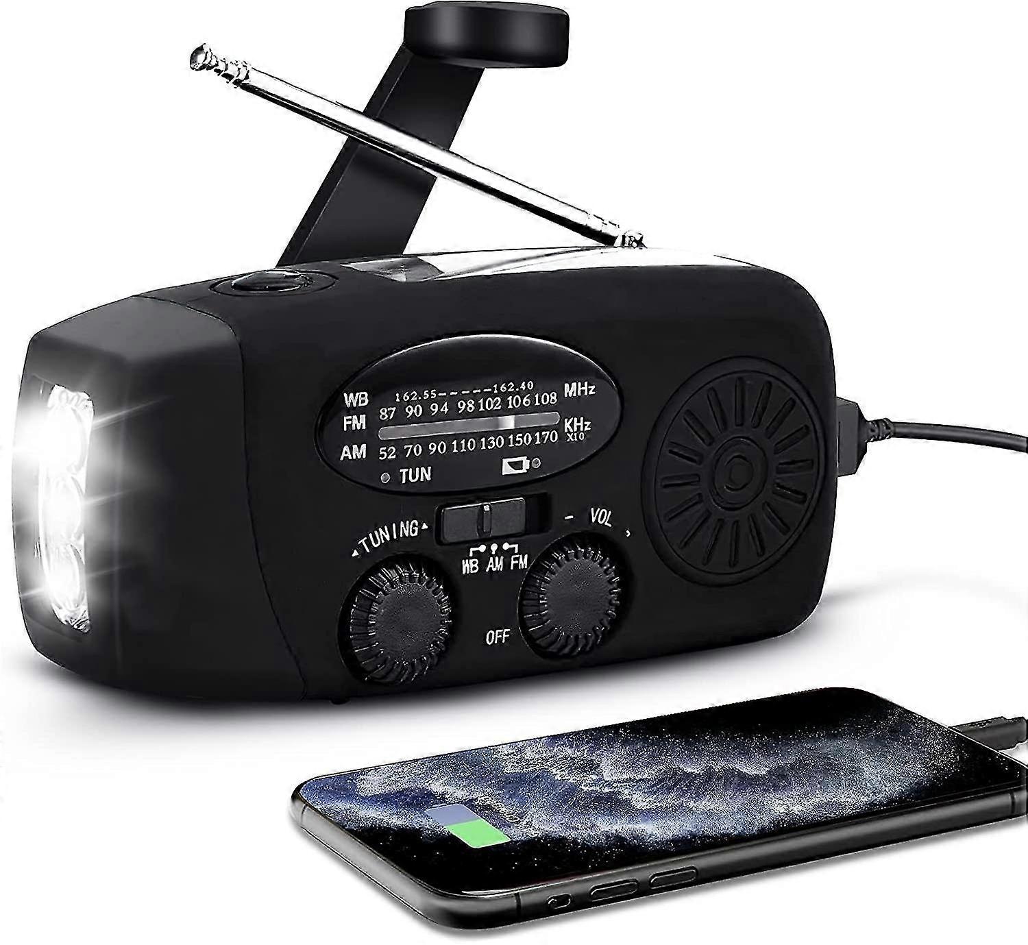 Multifunctional Solar Radio with USB/Hand-crank Function/WB Band (black)