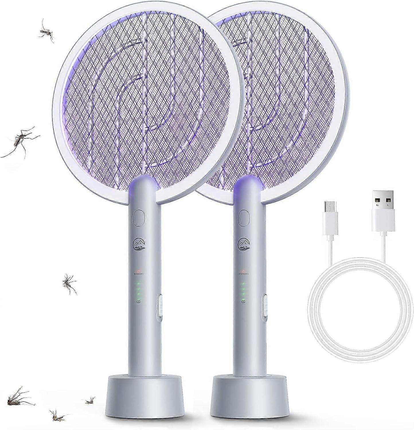 Electric Fly Swatter Racket 2 Pack, 2 in 1 Bug Zapper with USB Rechargeable Base, 4000 Vol