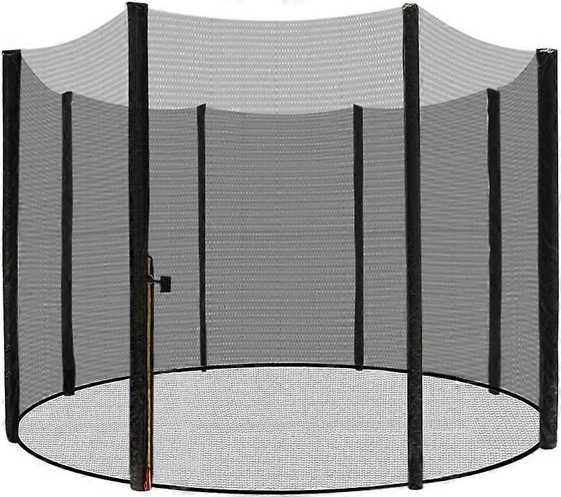 Trampoline netSize: 366cm, Height: 180cm, Material: Polyethylene, Colour: Black. Tear resistantThe high-density woven design increases the density by reducing the distance between the mesh holes to improve the toughness and tear resistance of the protective mesh, thereby achieving better protective effects. Double head zipper + safety buckleThe closed safety net covers the entire jumping surface and offers the best protection against accidents. During use, it can be opened and closed easily and securely by zippers and safety buckles. The additional safety buckle can reduce the stress on the zipper. UniversalSuitable for all round trampolines (independent of manufacturer) with a diameter of 366cm with 8 poles. The safety net is attached to the trampoline frame with a safety hook for stability. NoticeChildren must use this product under adult supervision and guidance. This product is not suitable for children under 6 years old.