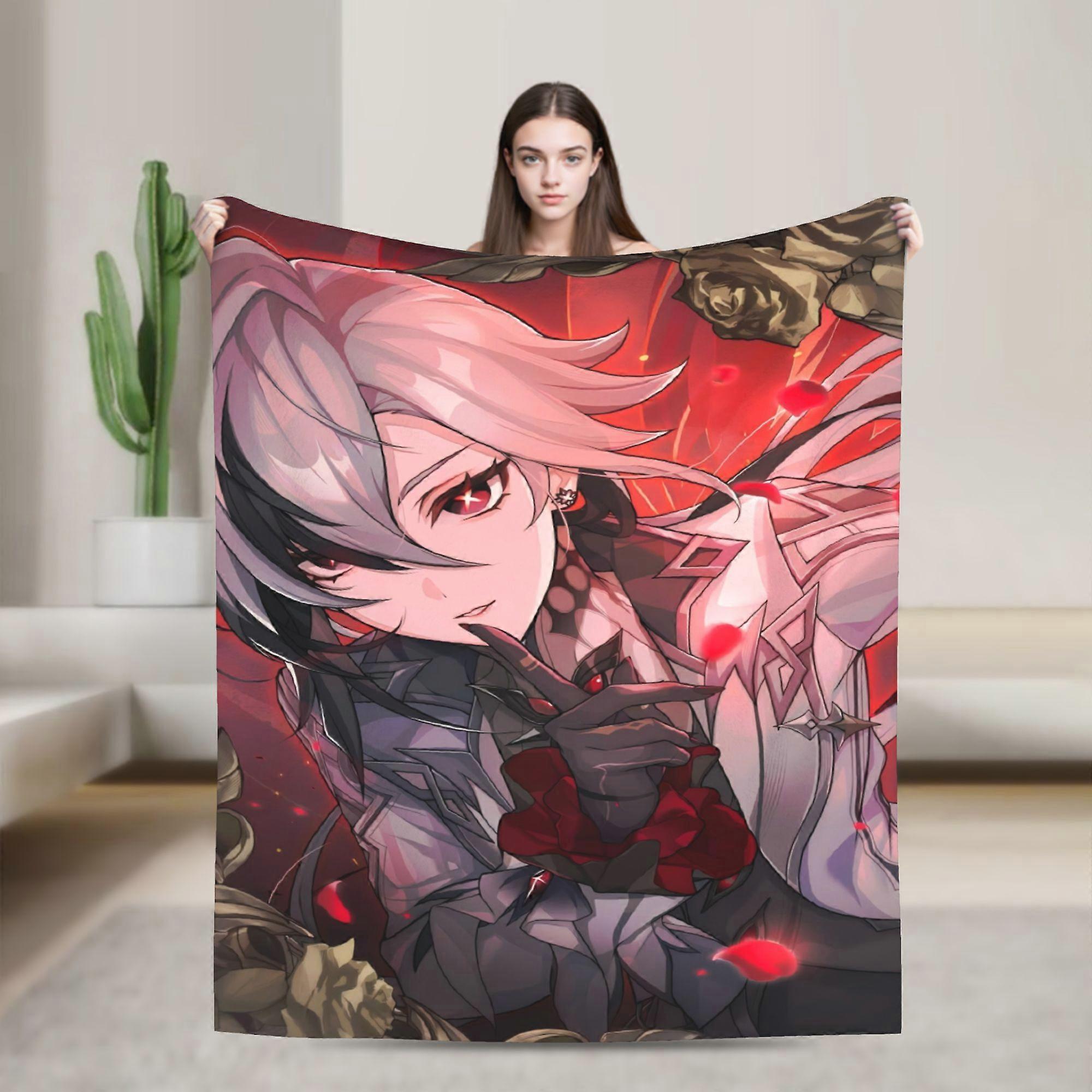 RedShadowPhantom Anime-Themed Ultra-Soft Flannel Blanket - Vibrant Character Design with Red & Accents, Machine Washable-PQAGF250