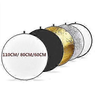 5-In-1 lightweight reflector: Gold, silver, white, black and translucent Gold: warm up the picture; Silver: brighten the picture; white: bounce light into shadows; black: block out unwanted light Collapse multi-disc light reflector into a portable size for travel or storage, best for photographers on the go This photography reflector comes with durable zippered carrying pouch Note:5 in 1 lighting reflector includes one translucent panel with four color covers that provide five photography effects, not five respective reflectors Note: Due to the light and screen setting difference, the item's color may be slightly different from the pictures. Please allow slight dimension difference due to different manual measurement.