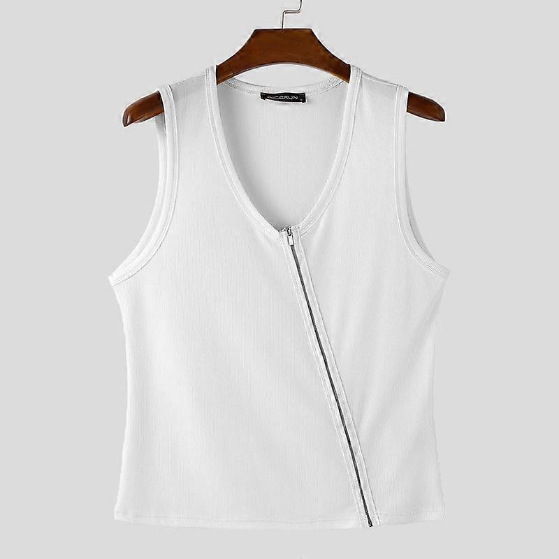 INCERUN Men V Neck Sleeveless Zip-up Casual Fitted Rib Tank Tops