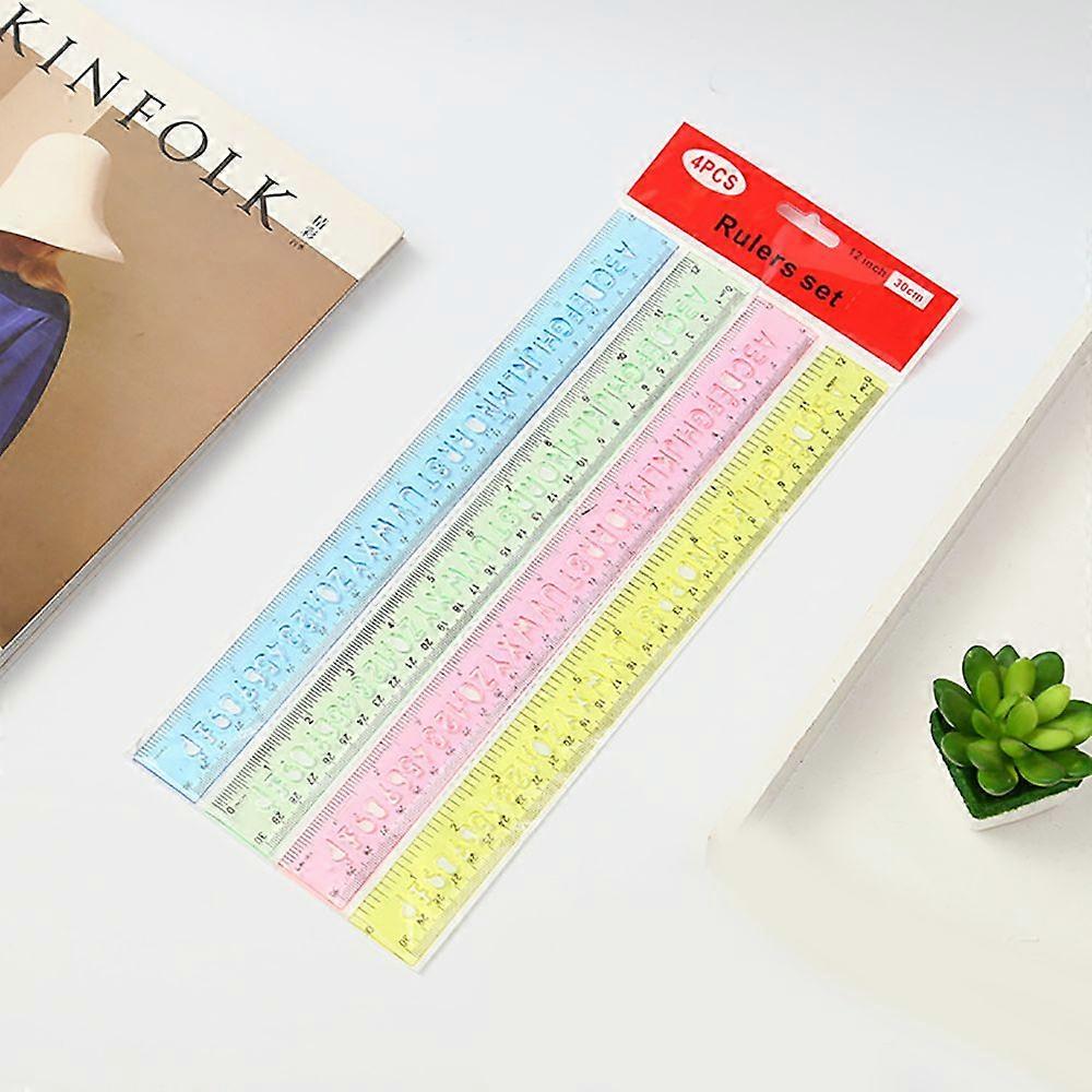 Color Plastic Ruler 12" (30cm), Inches Centimeter Metric Measuring Rulers (4/Pack), 1-Pack