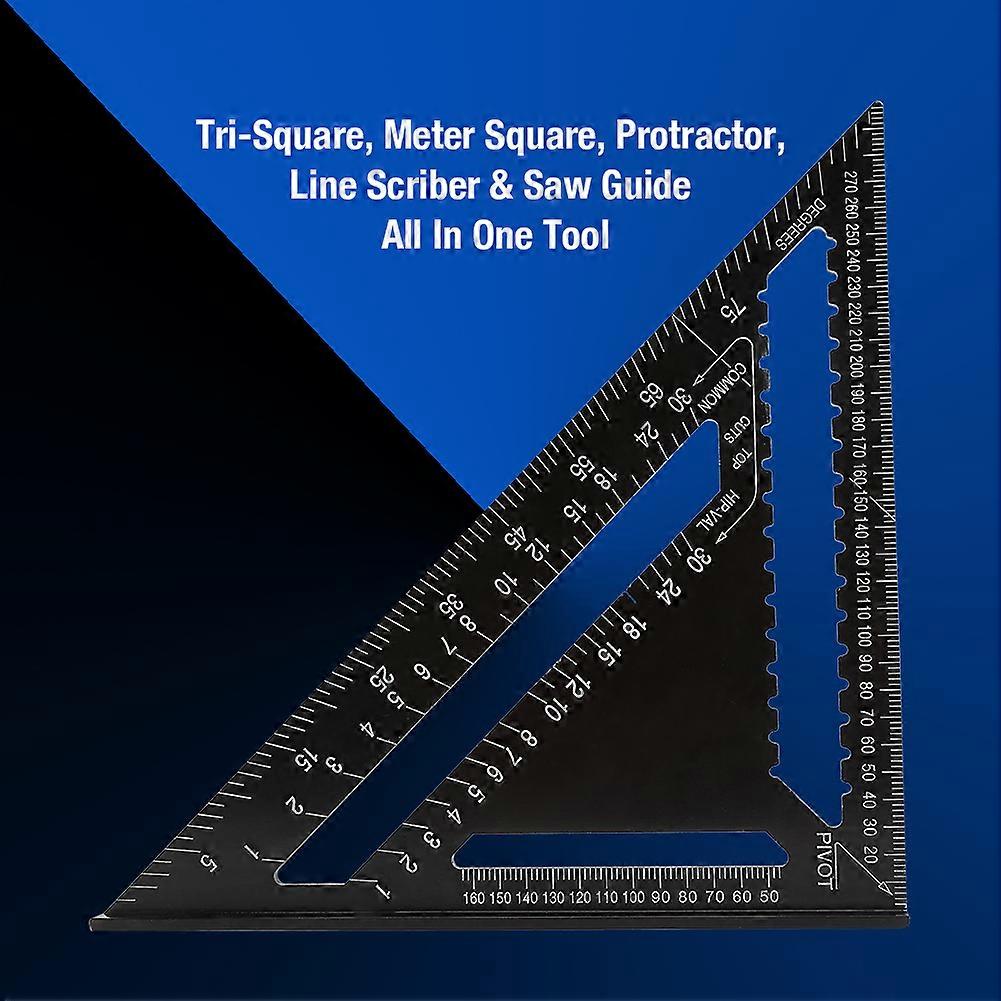 12 Inch Aluminum Alloy Triangle Shape Square Ruler Precision Engineer Carpenter Measuring Tool Description: This item is manufactured of aluminum alloy, corrosion resistant and durable, not easy to break. It can be used as a protractor, line scriber, saw guide and tri/meter square and a ruler, multi-functional. The lipped edge can be used for secure locating. Perfect tool for framing, roofing, building and remodeling projects. Features: Manufactured of aluminum alloy, corrosion resistant and durable, not easy to break. Can be used as a protractor, line scriber, saw guide and tri/meter square and a ruler, multi-functional. Perfect tool for framing, roofing, building and remodeling projects. The lipped edge can be used for secure locating. Features metric and imperial measurements with clear graduation, convenient for measuring. Specification: Condition: Material: Aluminum Alloy Color: Black Length of Side: Approx. 300mm / 12.0inch Package Weight: Approx. 544g Package Included: 1 x Ruler Note: 1. Due to the light and screen difference, the item's color maybe slightly different from the pictures. Please understand. 2. Please allow 1-2cm differences because of the manual measurement.