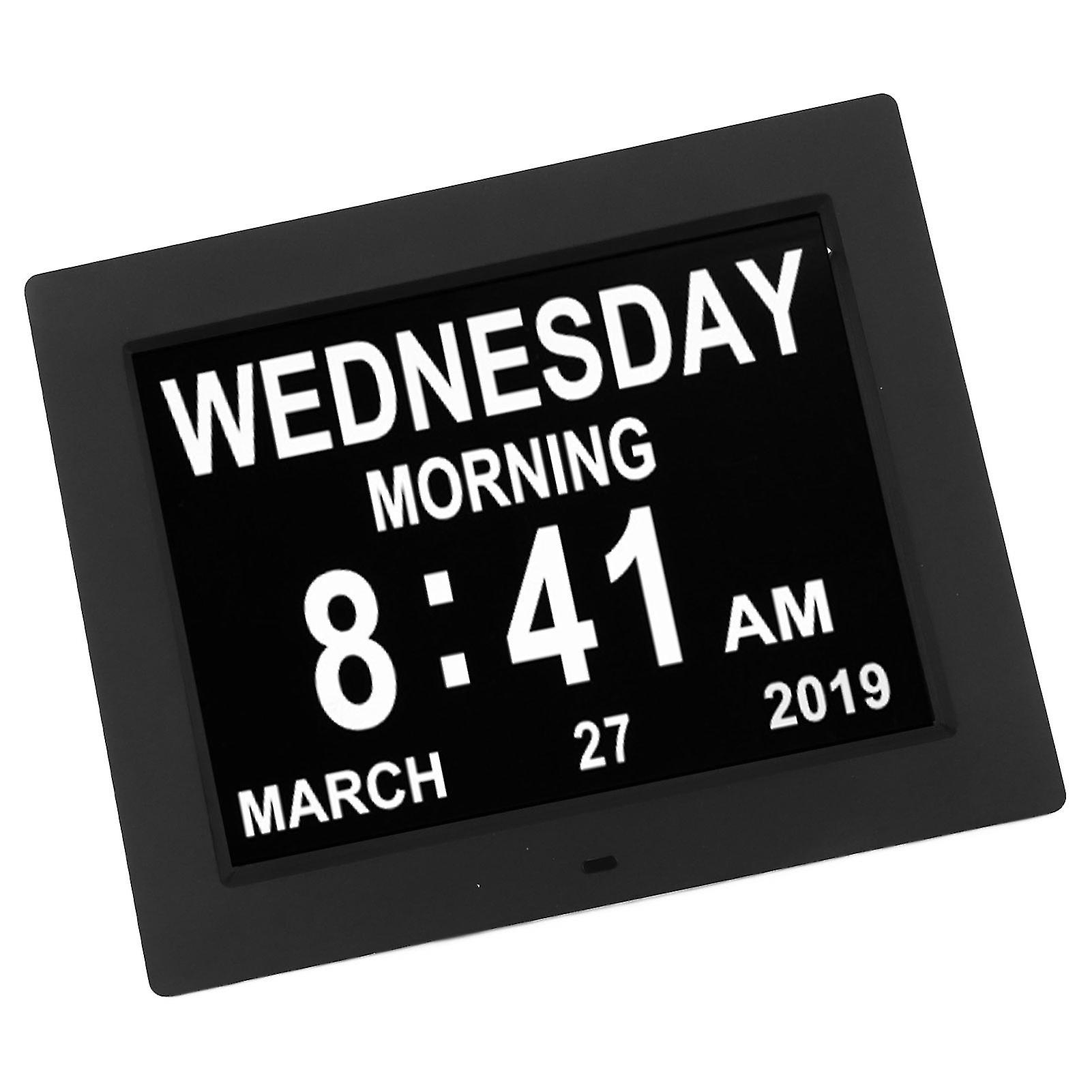 10 Inch Digital Calendar Clock Auto Dimming Take Medicine Reminder Electronic Calendar Alarm Day Clock 110‑240V EU Plug Item Type: Digital Calendar Clock Material: ABS Color: Black Built in Battery of Remote Controller: CR2025 Battery x 1 160mAh Resolution: 1024x768 Time Mode: 12/24 Hour System Date Mode: Day, Month, Year, Month, Day, Year Automatic Brightness Adjustment: Support (Automatic Brightness Switching During the Day Or Night) Power Failure Save Time: Support Language Type: 8 Languages Are Available (English, French, Spanish, German, Italian, Polish, Dutch, Swedish) Storage Card Storage: Support Brightness: 300cd/㎡