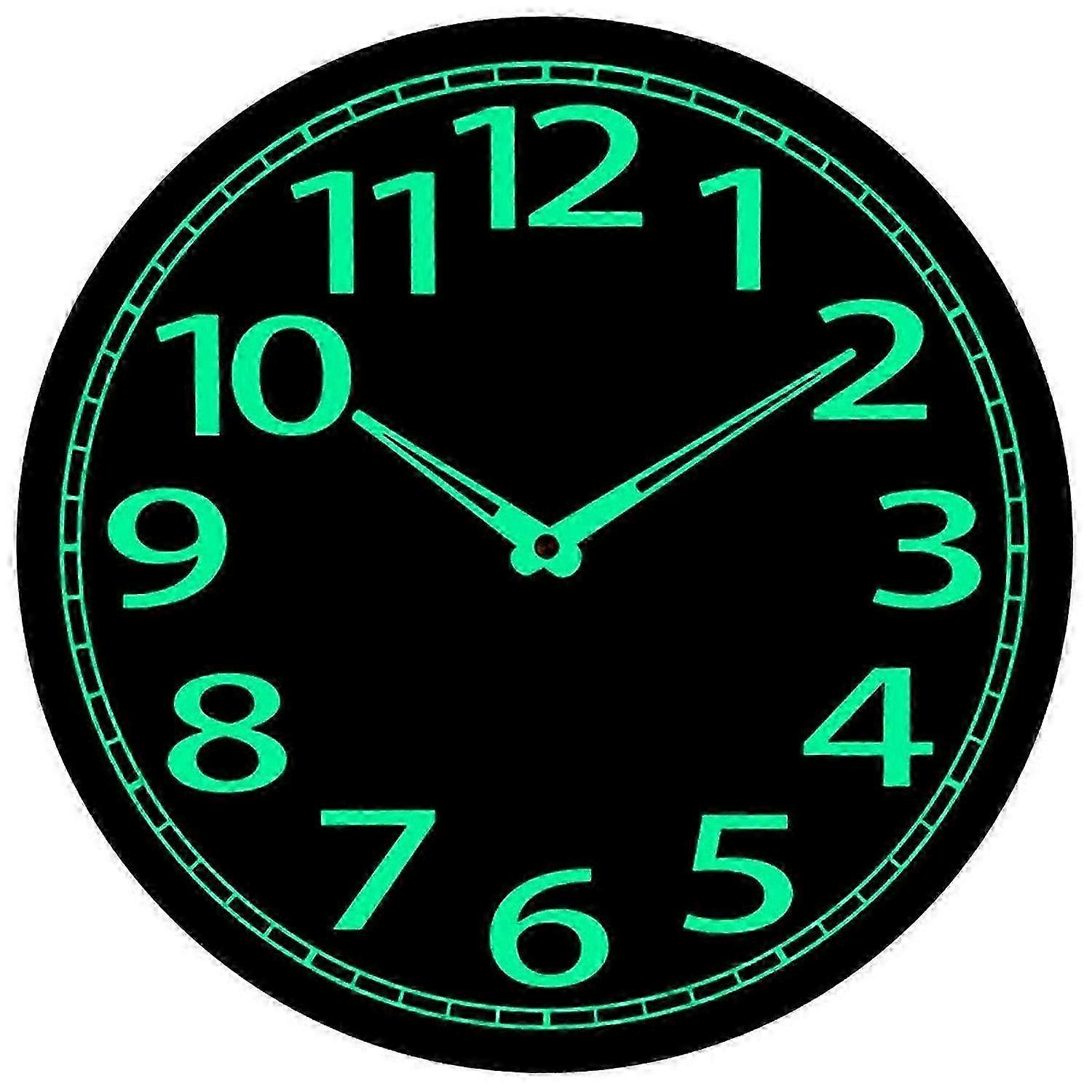 Luminous Function: This wall clock has a luminous function, the numbers and hands are coated with phosphors, which absorb light during the day. This ensures a gradual and continuous glow throughout the evening, improving visibility and adding a magical touch to your room. Extended Illumination Time: Enjoy more than 3 hours of illumination after a day of exposure to sunlight. The clock's luminous hands and large numbers do not require battery power, providing an environmentally friendly way to tell time in low-light conditions. Frameless Modern Design: Made of wood, this clock features luminous green Arabic numerals and hands, and a stylish frameless design without glass. It is an elegant and practical piece that complements any decor style while ensuring easy reading. Silent Operation: Equipped with a superior sweep frequency movement, the tick-free wall clock ensures truly silent and precise timekeeping. Its smooth second hand movement guarantees a quiet environment without annoying ticking sounds. Easy Installation and Hand Alignment: check the alignment of the clock hands during setup to optimal performance. If adjustment is required, the hands can be easily manually realigned to maintain parallel positioning. The movement requires 1xAA battery to power it (not included) Power Supply:1xAA battery(Not included batteries) Colour:Wood Color Material:Wood Size:30cm Package Contents: 1 x hanging clock Only the above package content, other products are not included. Note: Light reflection and different displays may cause the color of the item in the picture a little different from the real thing. The measurement allowed error is 1-3cm.
