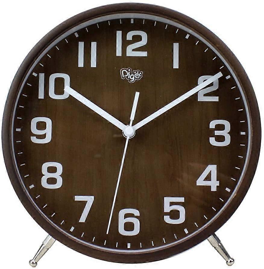Wekity 8 Inch Wood Table Clock,Non-Ticking Table Desk Clock Battery Operated (Brown)
