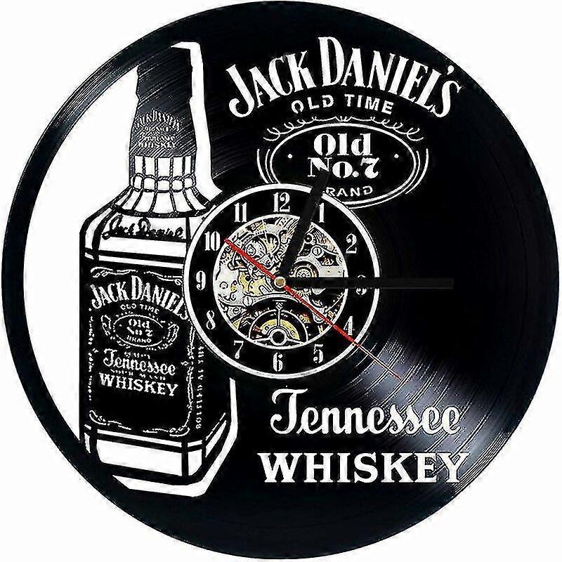 Wall Clock Vinyl Record Clock Upcycling Led Jack Daniels Family Decoration 3d Design Clock Living Room Bedroom Restaurant Wall Decoration Black :