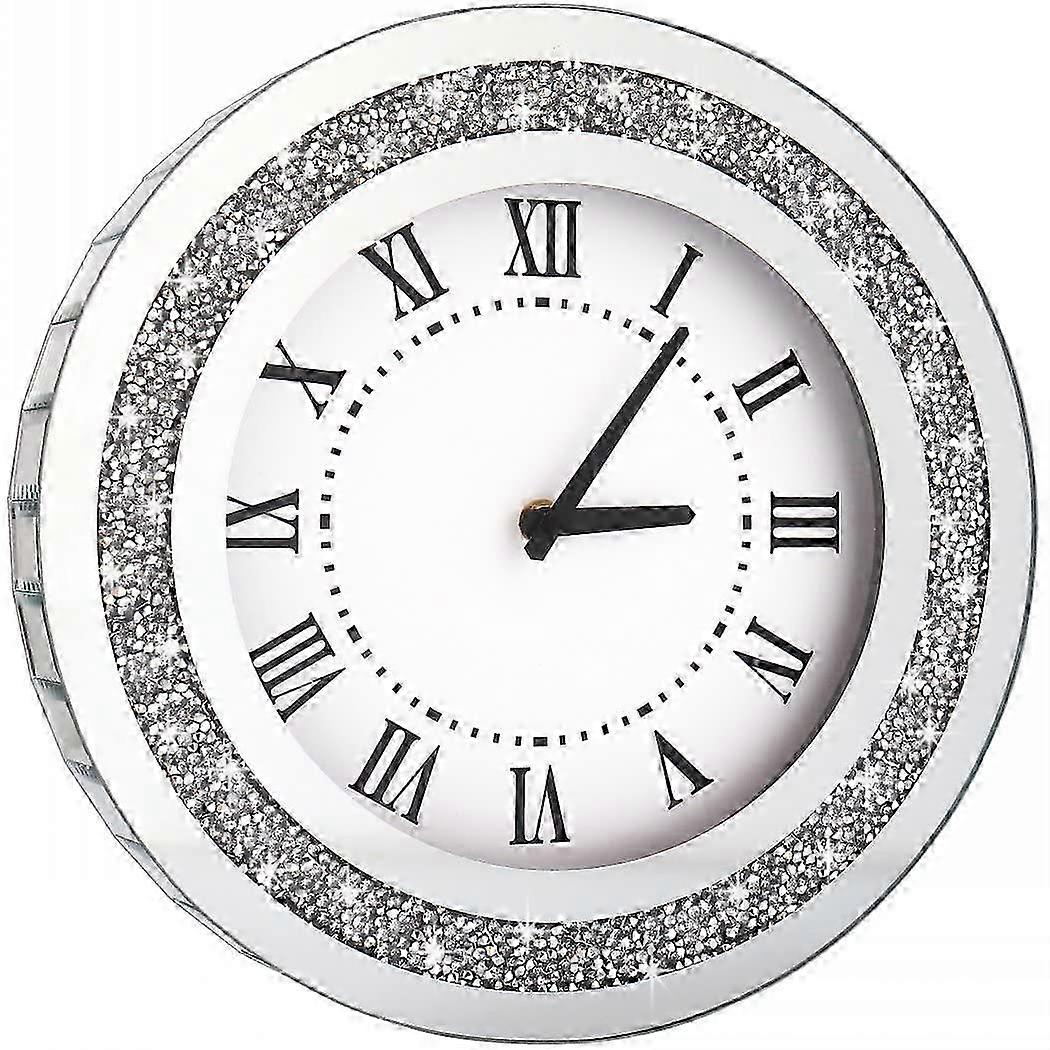 25-26 Silver round mirror clock 12 -inch crystal glow shimmering bling Crush rhinestone mirror wall clock