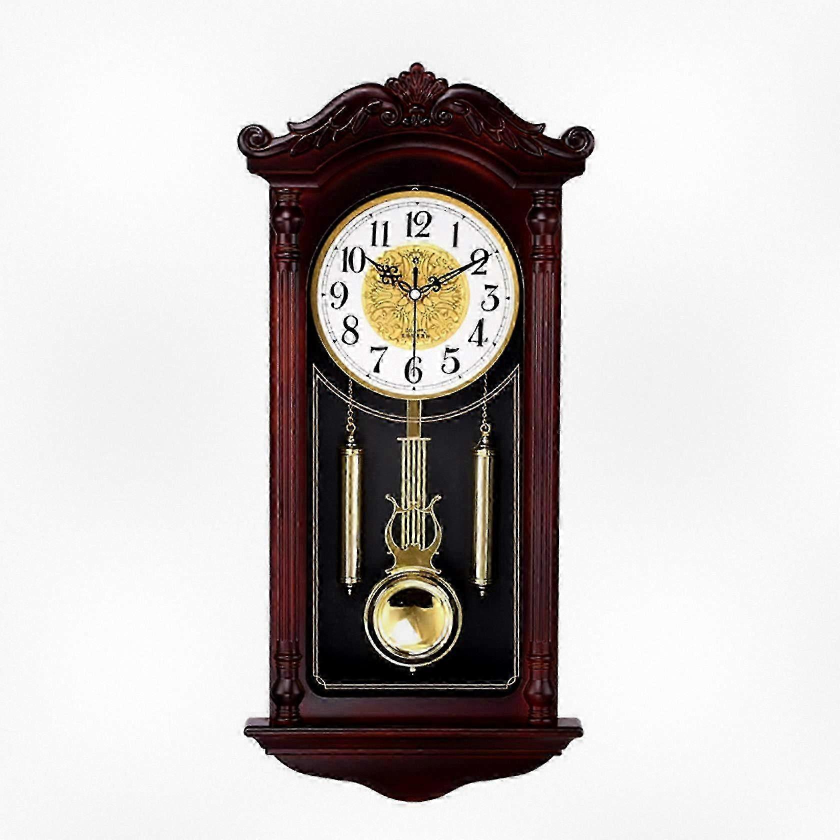 Traditional Wooden Grandfather Wall Clock with Chime Pendulum, Silent Non-Ticking Wood Wall Clock for Home & Office Decor