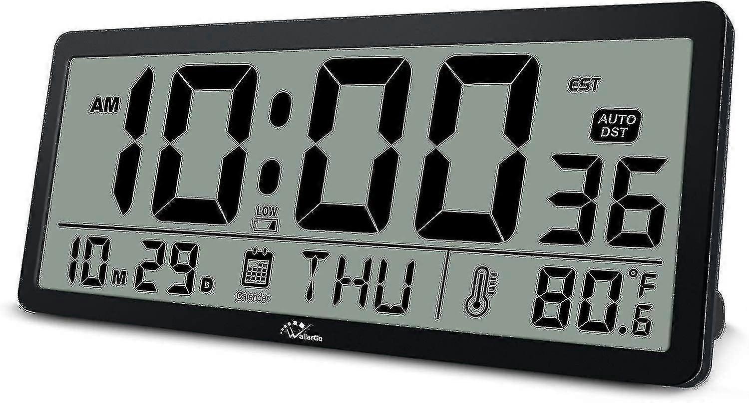 Large Digital Wall Clock - 14 Inch Oversize Battery Operated Desk Clock With Temperature,date And Se