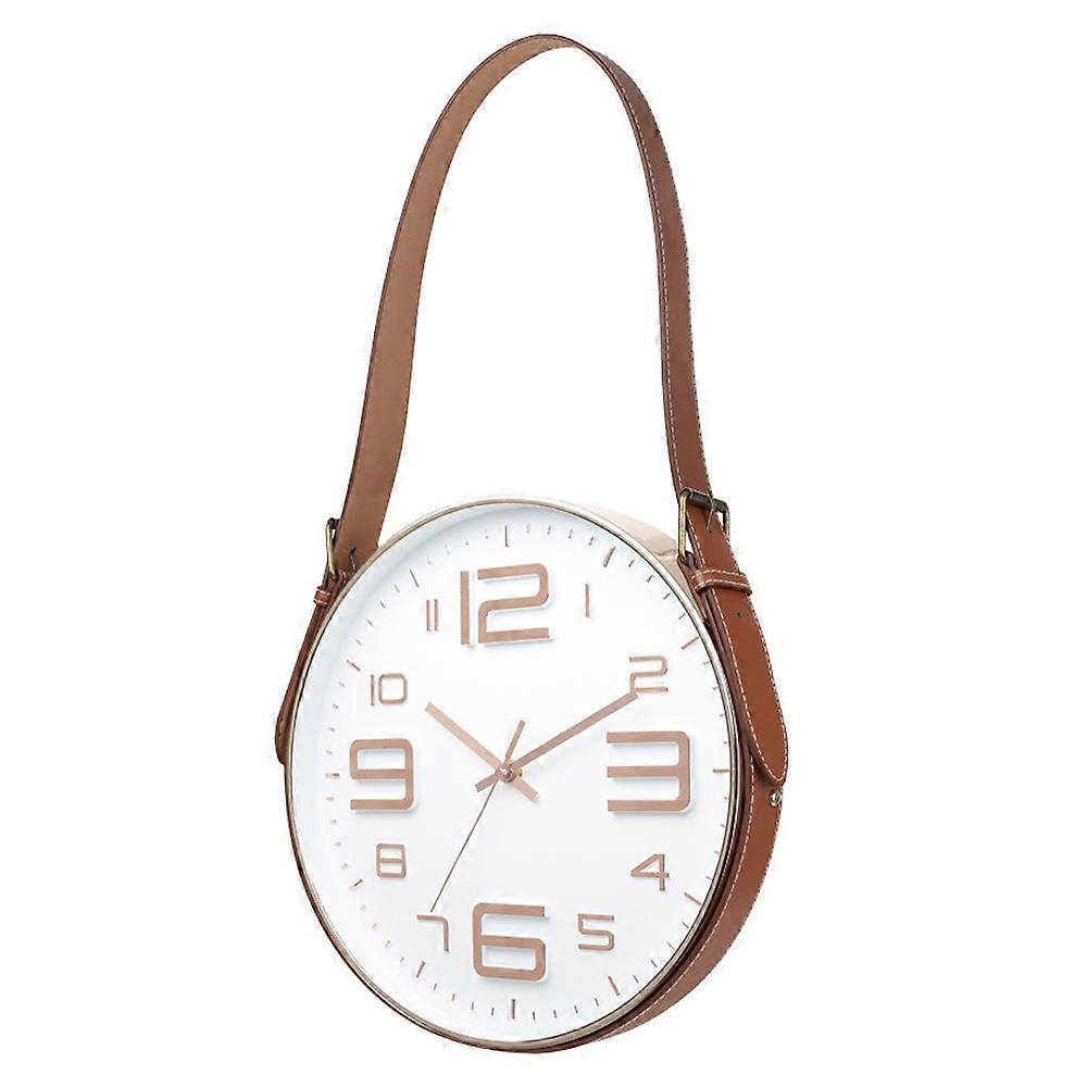12-Inch Round Golden Wall Clock-Large Display With Pu Belt-White