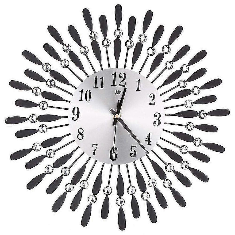 15 inch 3D Large Wall Clock Shiny Rhinestone Sun Style Room Decor (Black)
