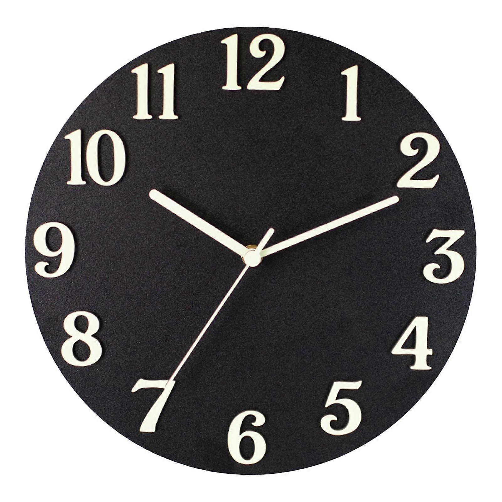 12 inch Luminous Wall Clock Hanging for Living Room Office Wood