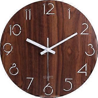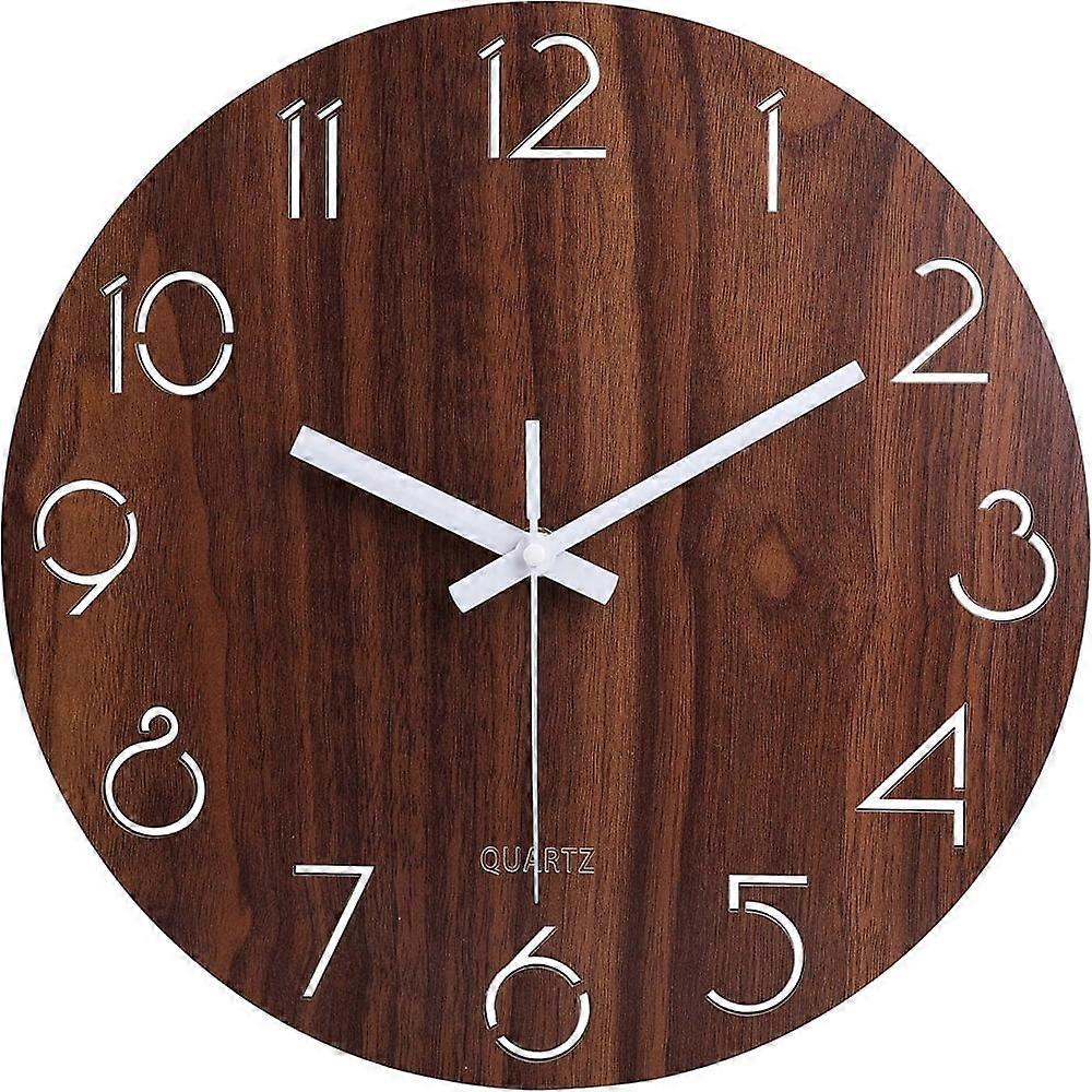 12" Shabby Chic Design Rustic Country Tuscan Style Wooden Decorative Round Wall Clock Silent Non-Ticking Wall Clock for Home Office