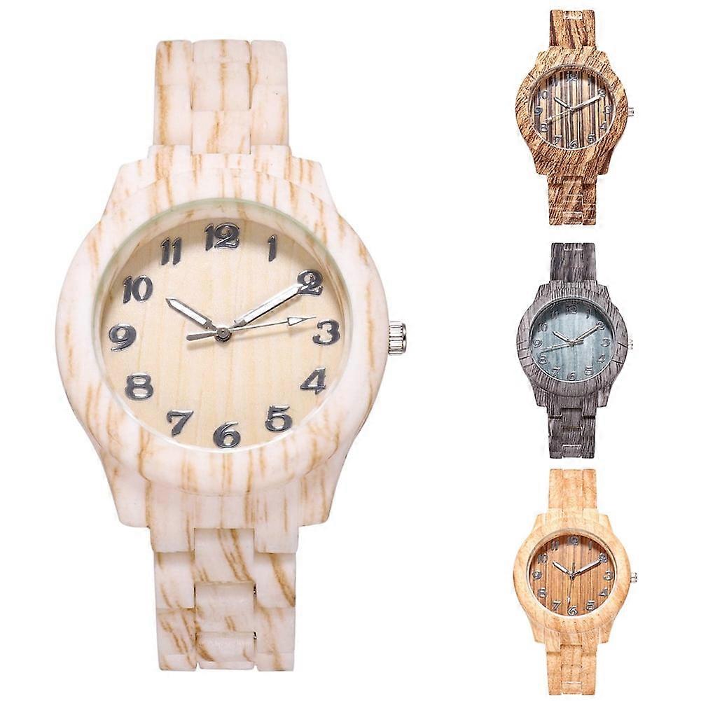 Bluethy Women Wooden Grain Round Dial Arabic Number Resin Band Analog Quartz Wrist Watch