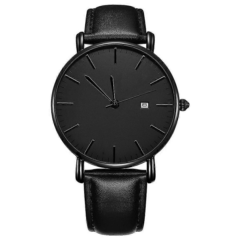 Business Men Minimalist Calendar Round Dial Faux Leather Band Quartz Watch