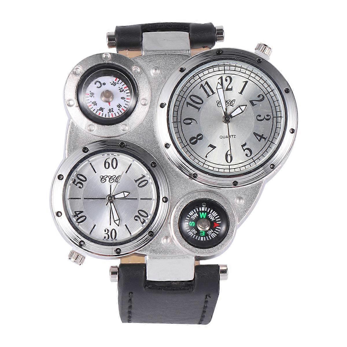 Outdoor Watch With Thermometer And Compass Black Round Style For Men 1Pack