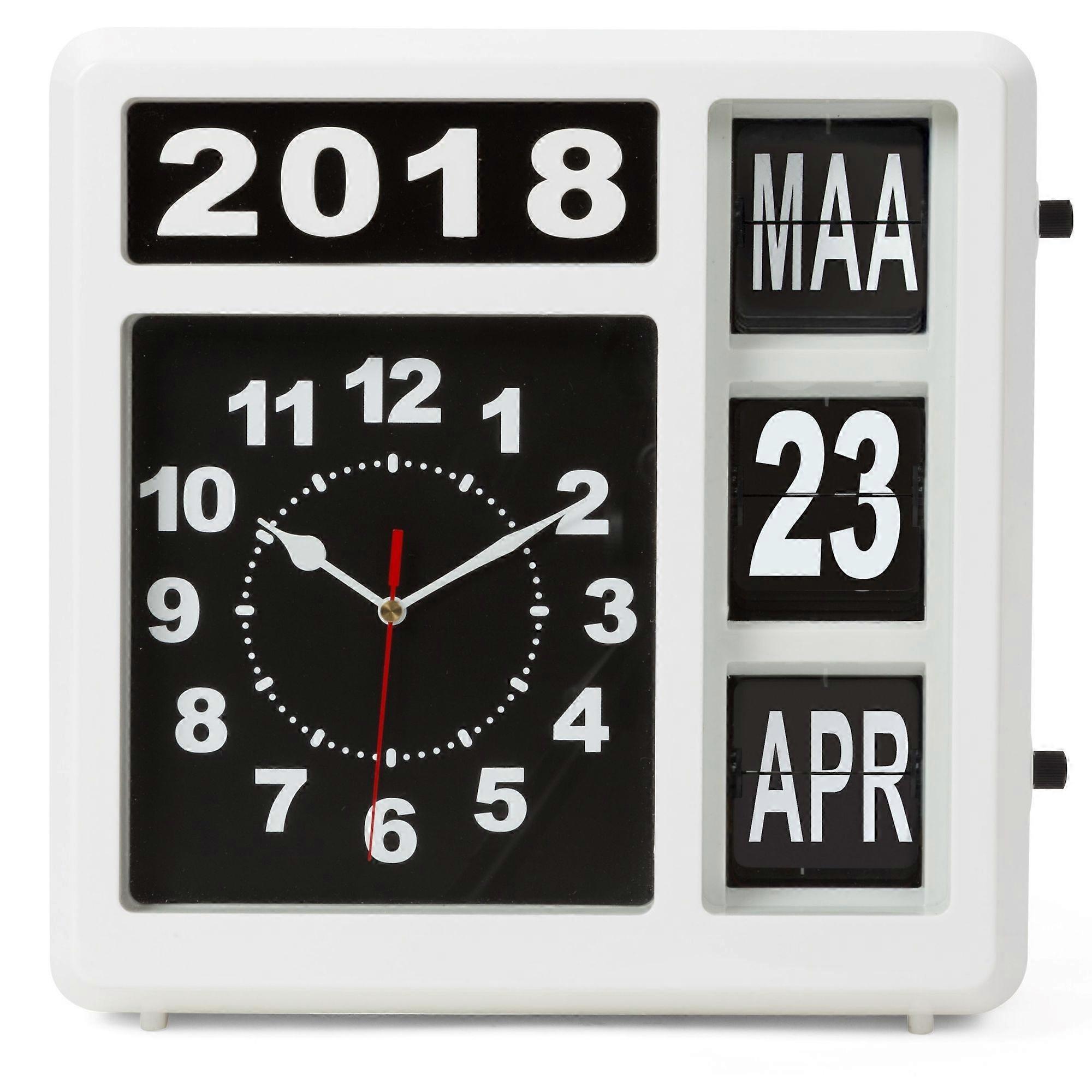 Perel Vierkante klok met flip-over kalender, ideaal voor slechtzienden en