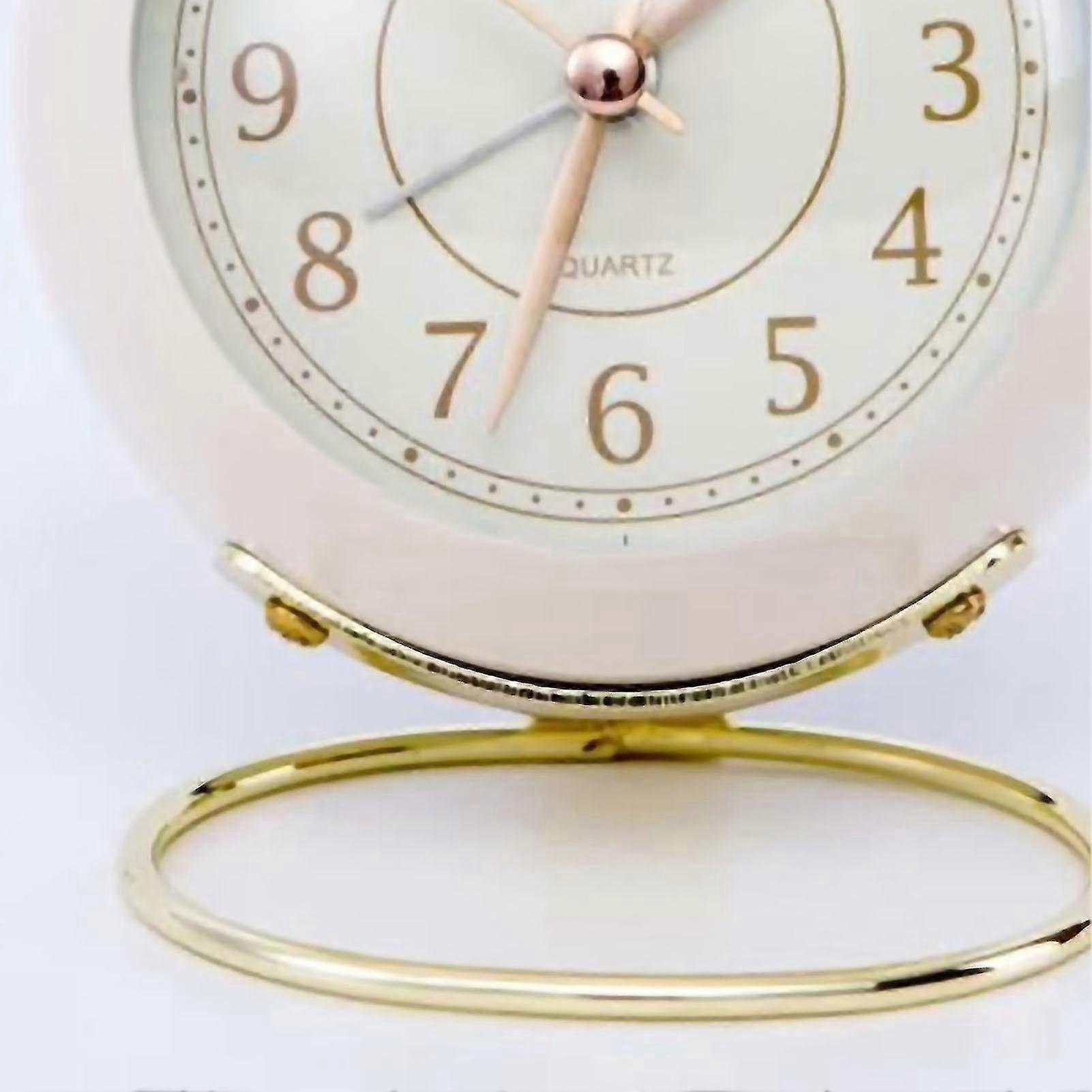 Small Round Clock Circular Base Mute Corrosion Resistance Quartz Bedside Alarm Clock with Night Light for Bedroom School Creamy White, Golden Cover 20