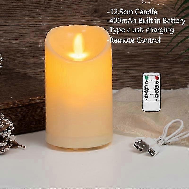 Remote Control LED Pillar Light USB-C Rechargeable Atmosphere Light & Timer for Wedding Party Yellow LED Night Light