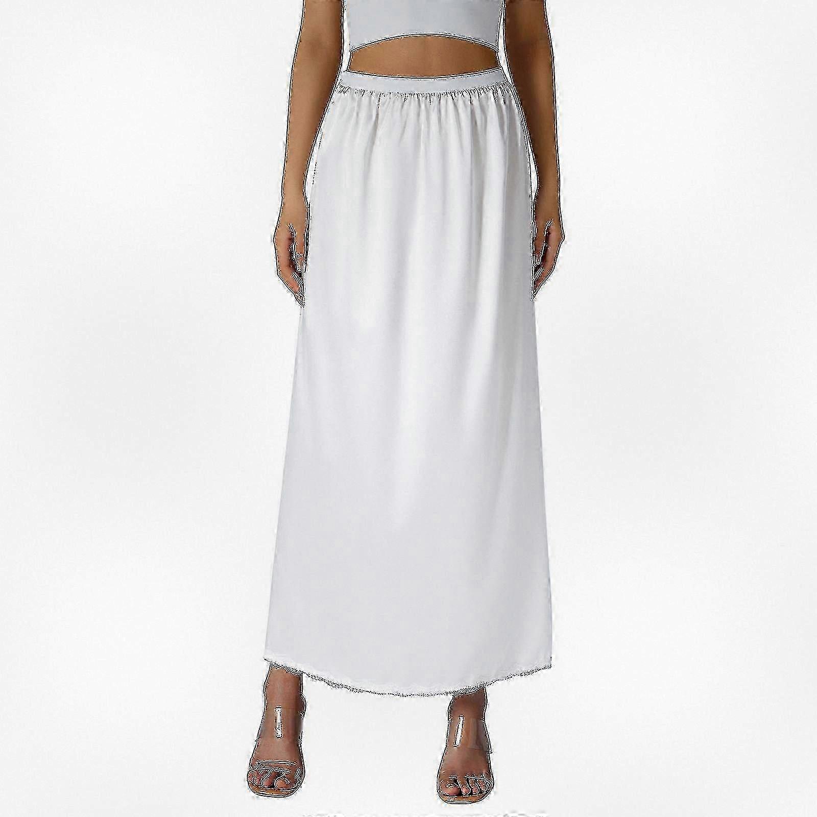 Lace-trimmed satin half slip with elastic waist for women, elegant underskirt