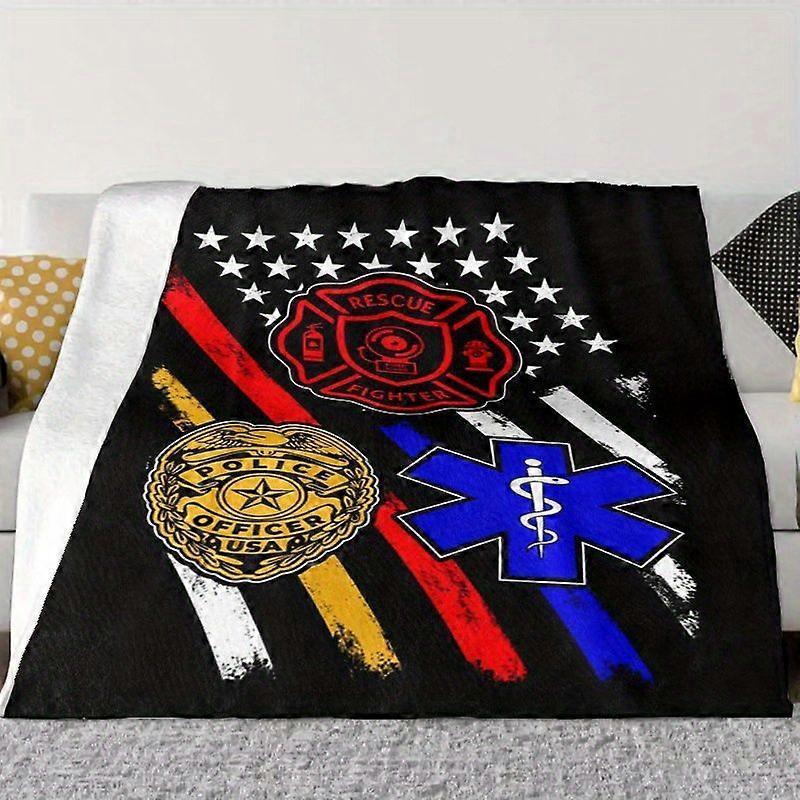 Rescue Center Flannel Fleece Throw Blanket - Soft, Warm, and Cozy Polyester Knit with Digital Print of EMS and Medical S-EDFGH242