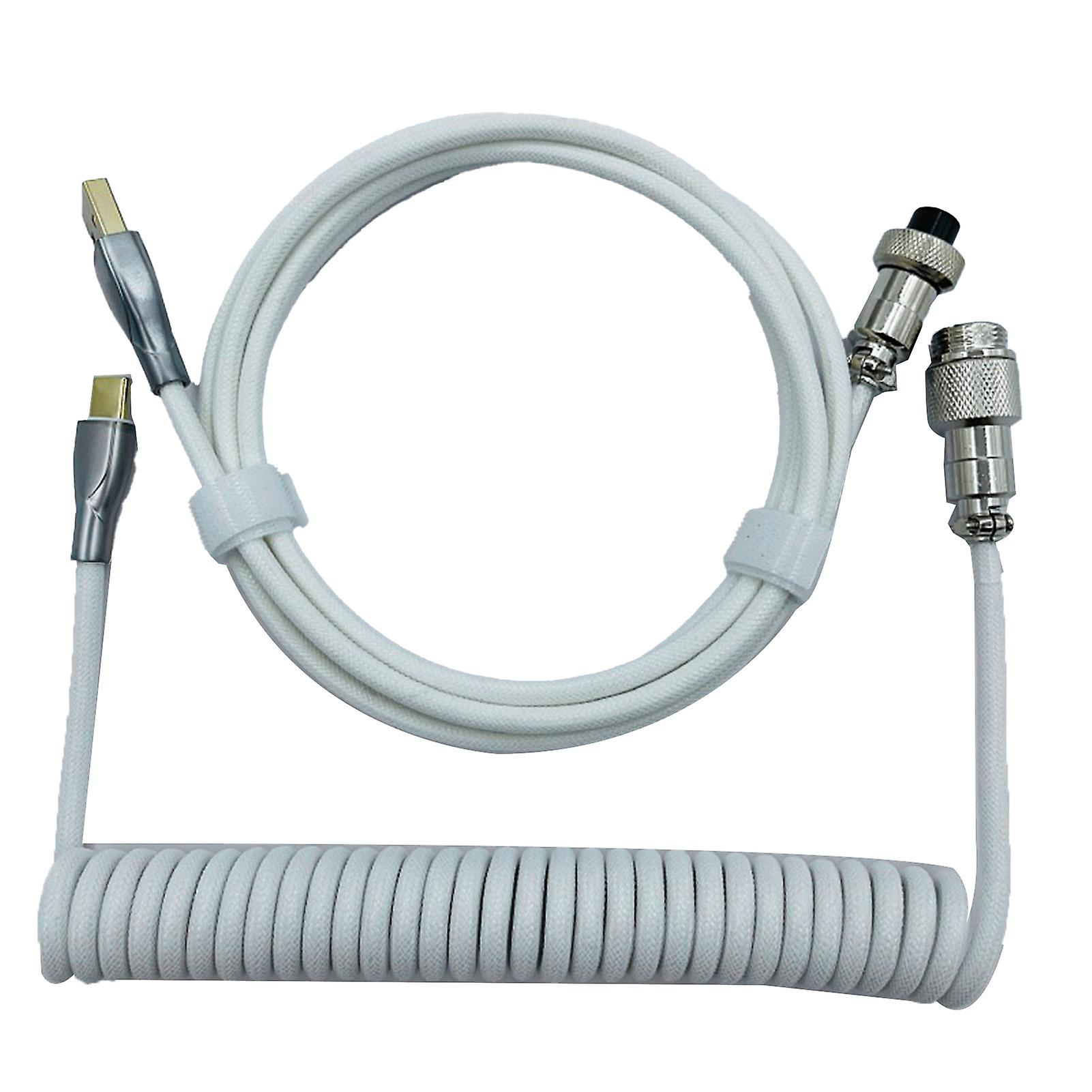 Retractable Coiled Gaming Keyboard Cable White Durable Sturdy Connector for Mechanical Keyboards Professional Quality Accessory