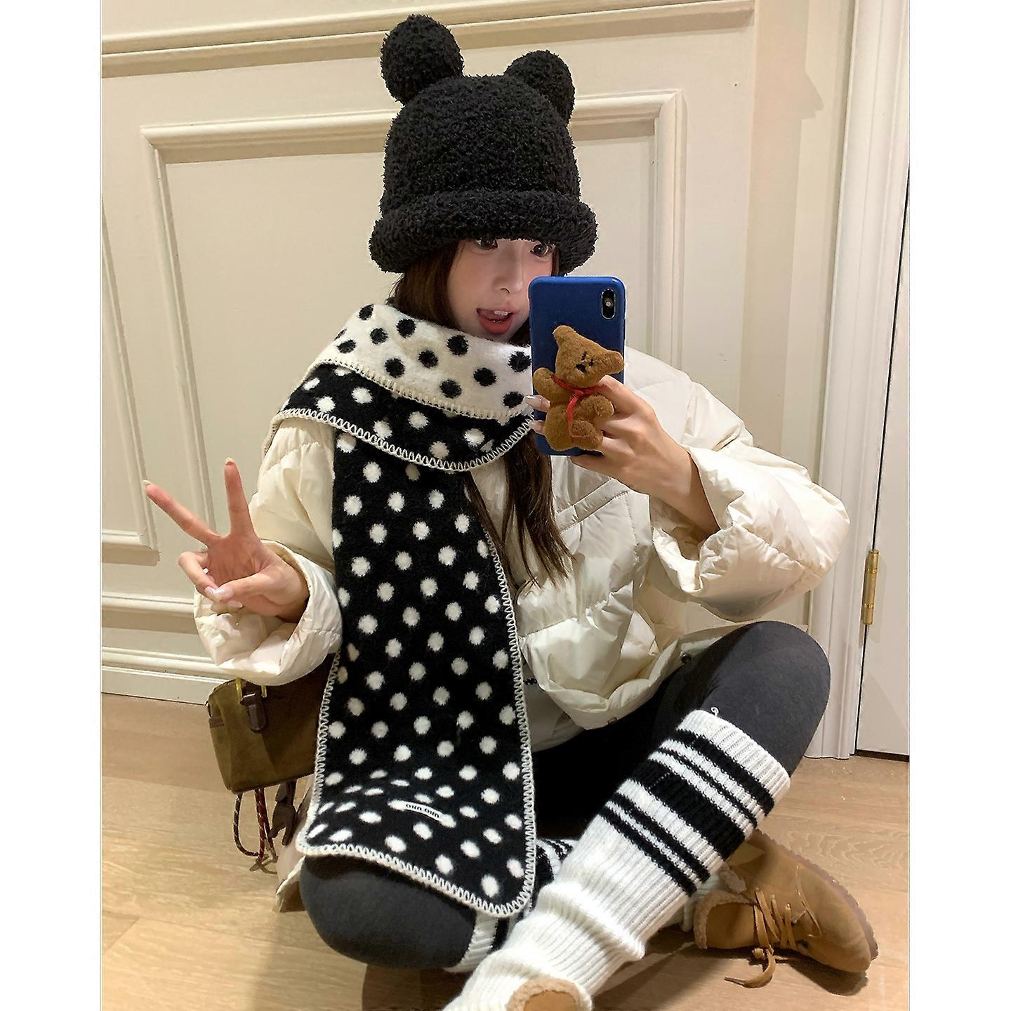 Retro Color-Block Polka Dot Double-Sided Scarf For Women Warm And Cold-Proof For Autumn And Winter Student Neck Warmer