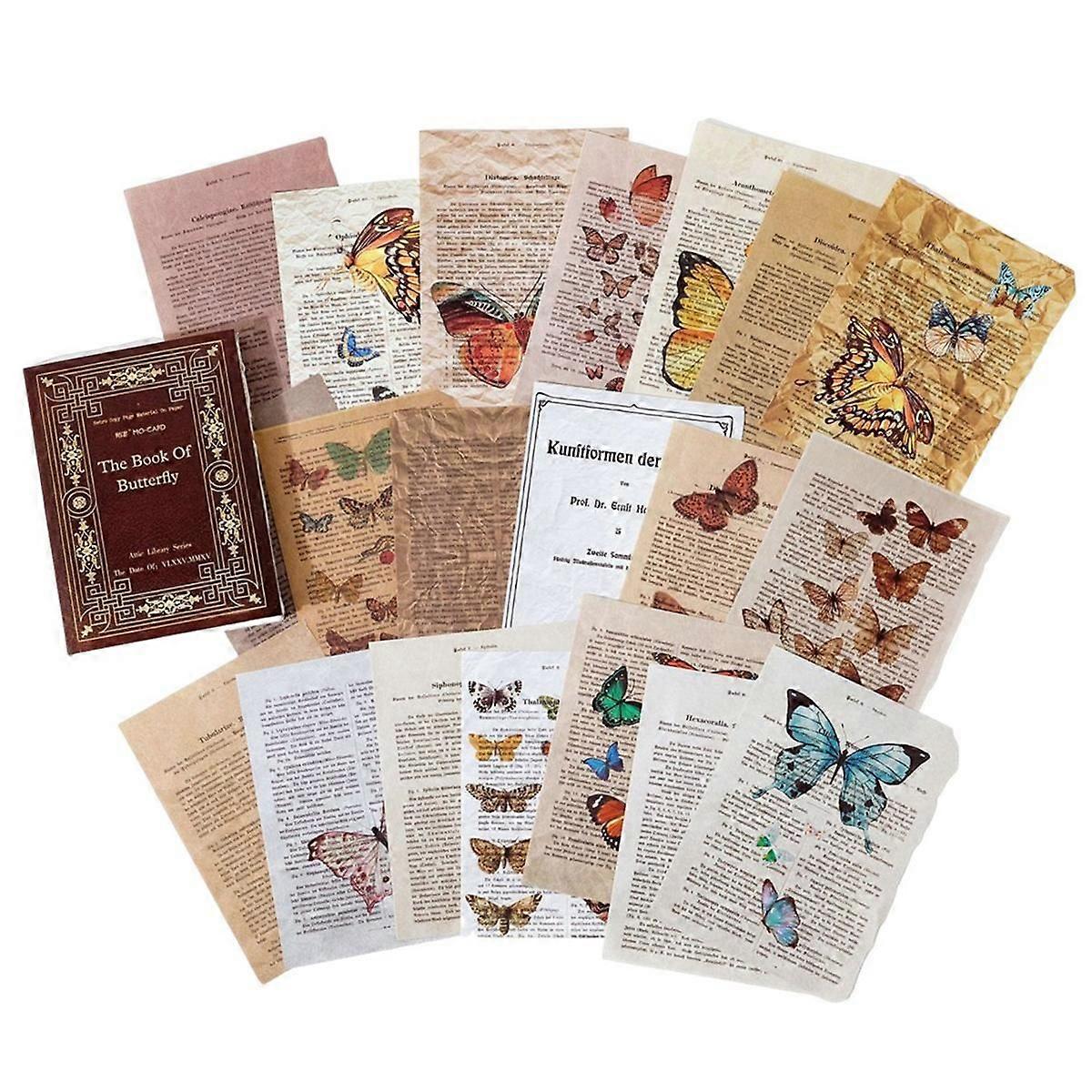 Retro Trace Book Page Material Paper Old Book Page Text Old Newspaper Decorative Material Paper Butterfly