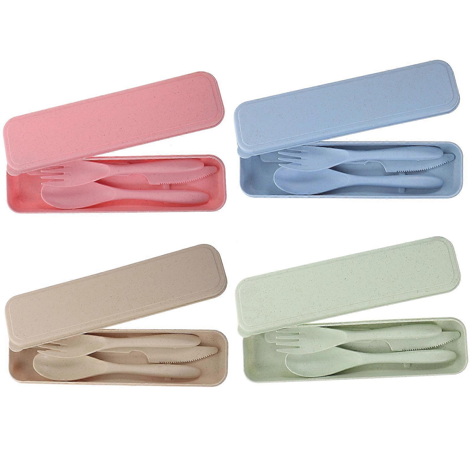 Reusable Silverware with Case for Lunch Made of Food Grade and Wheat Assorted Color