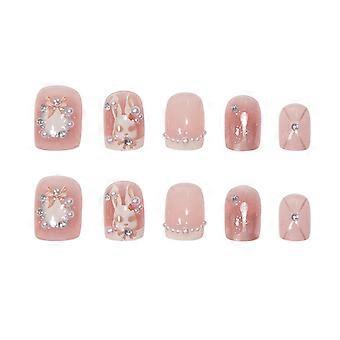 Reutilizável 24 Pcs Press On Unhas Coelhos Brancos Unhas Falsas Pink Nail Kit Com cola para Diy At-home Kit Manicure