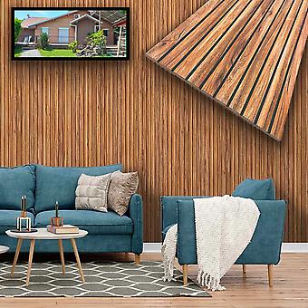 Revestimento externo - interior isolante em isopor 3d de 2 cm com jateamento e argamassa com nervuras de carvalho escuro