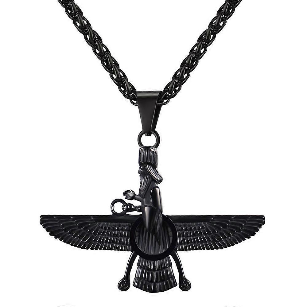 Richsteel Faravahar Necklace With Chain Gold Color Stainless Steel Iranian Persian Zoroastrian Jewelry Black Necklaces P4g
