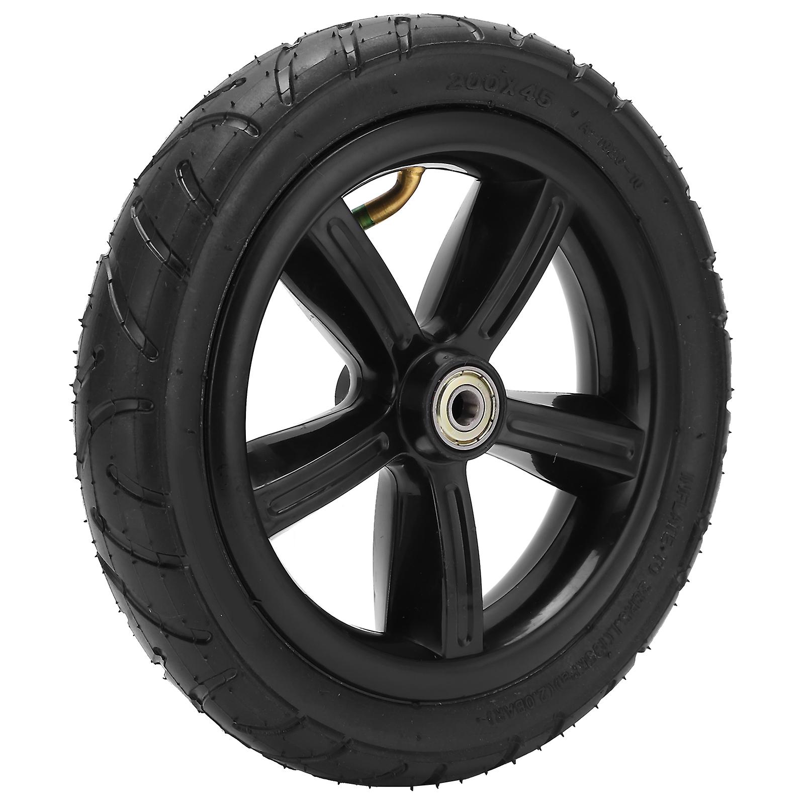 Feature 1The texture of the tire surface helps the scooter have a good grip and antiskid ability, and it can be used in snowy and rainy days. 2The special hollow design enables the scooter to have excellent shock absorption and pressure cushioning performance. 3Using high quality rubber materials, the tire is wear resistant, durable, and has a long service life. 4With a inner tube, wheel hub and a bearing with an inner diameter of 8mm / 0.3in, the function is more complete. 5Pneumatic wheel can ensure that the pressure on each part of the wheel is almost equal, so that the wheel is not easily deformed. Item Type: Electric Scooter Tire Material: Rubber + Plastic Product Color: Black Bearing Inner Diameter: Approx. 8mm / 0.3in Product Weight: Approx. 450g / 15.9oz Package List 1 x Electric Scooter Tire Note 1. Before purchase, please confirm that the tire model is 200x45mm and the bearing inner diameter is 8MM 2. If the above parameters are correct but cannot be installed, please remove the original tire bearing and install it on our tire