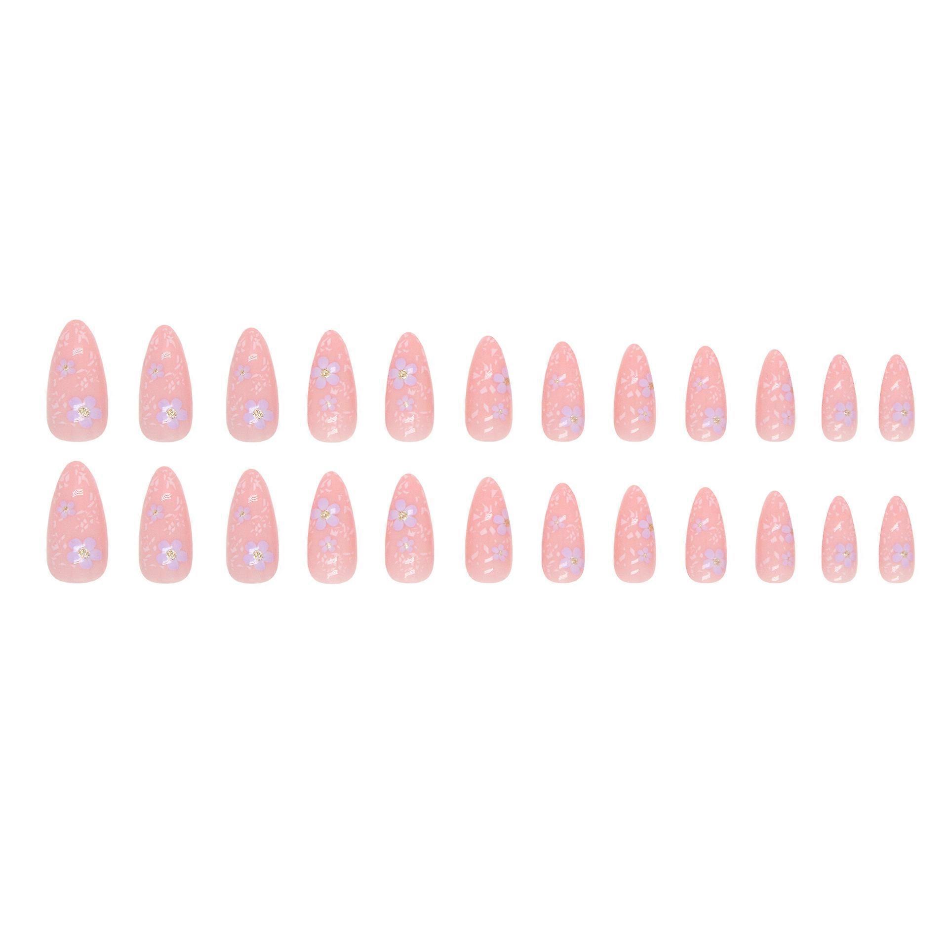 Pink with Gold Foil Decor Almond False Manicure Easy to Apply Simple to Peel off