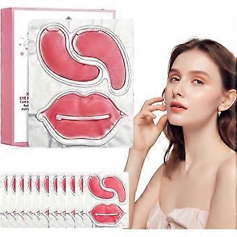 Rose 10 Pcs Collagen Lip Masks & Bio Collagen Eye Patches, Lip Care Eye Mask Lip Mask Set, Lip Moisturizing Patches, Under Eye Mask for Reducing Dark