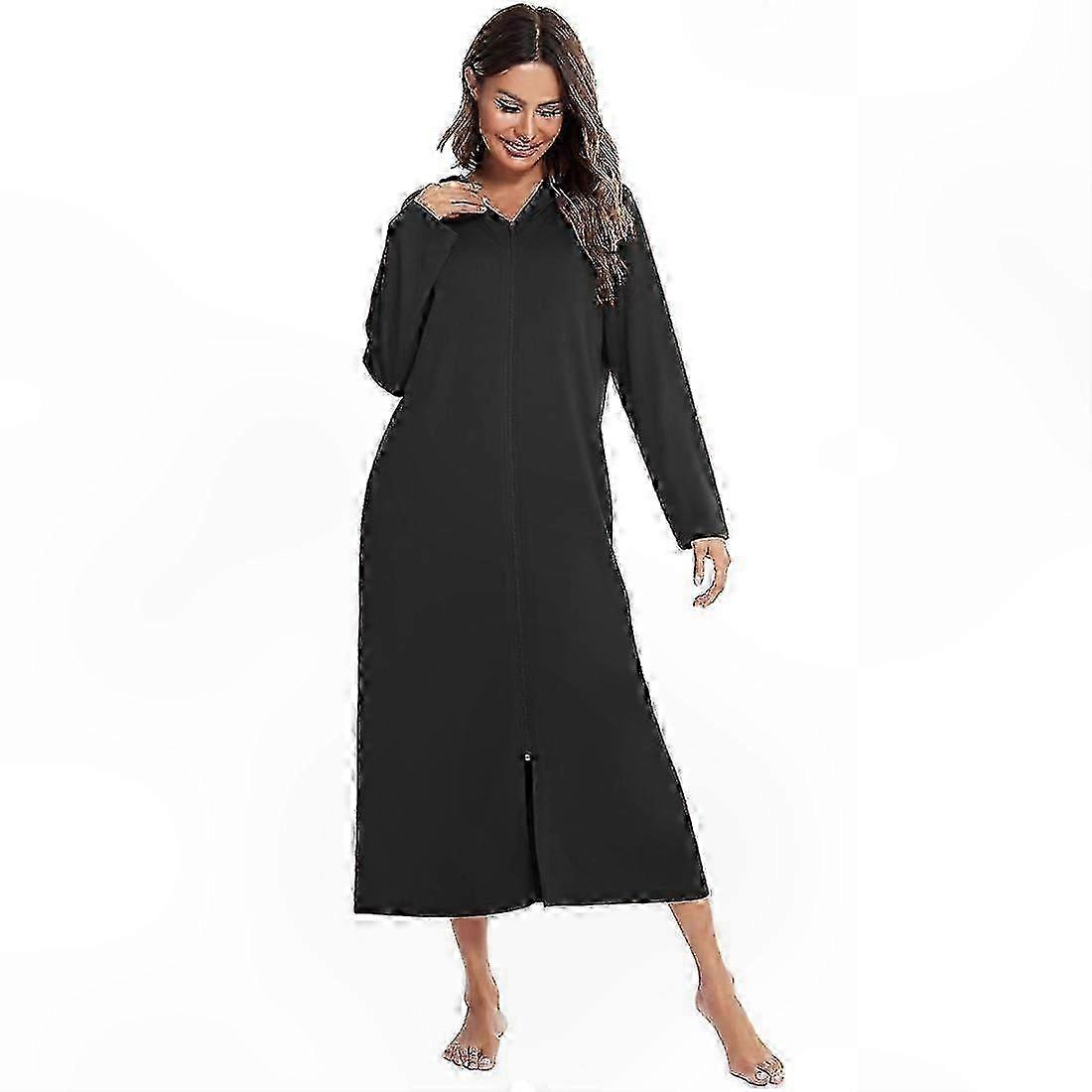 Soft Hooded Robe for Women - Full Length Zip-Up Cotton Lounger with Long Sleeves and Zippered Front Closure Nightwear Kimono