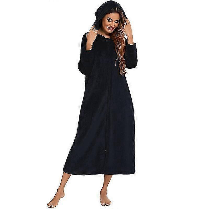 Women's Zip Up Plush Fleece Robe Hooded Warm Long Bathrobe Dressing Gown Winter Cozy Zipper Lounger Sleepwear Housecoat Loungewear Nightgown