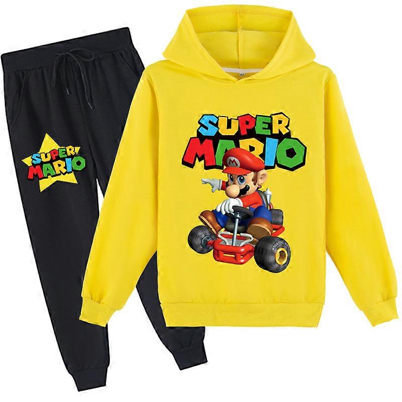Children's clothing for older children with cartoon print casual sports hoodie sweatshirt top + trousers set Y342