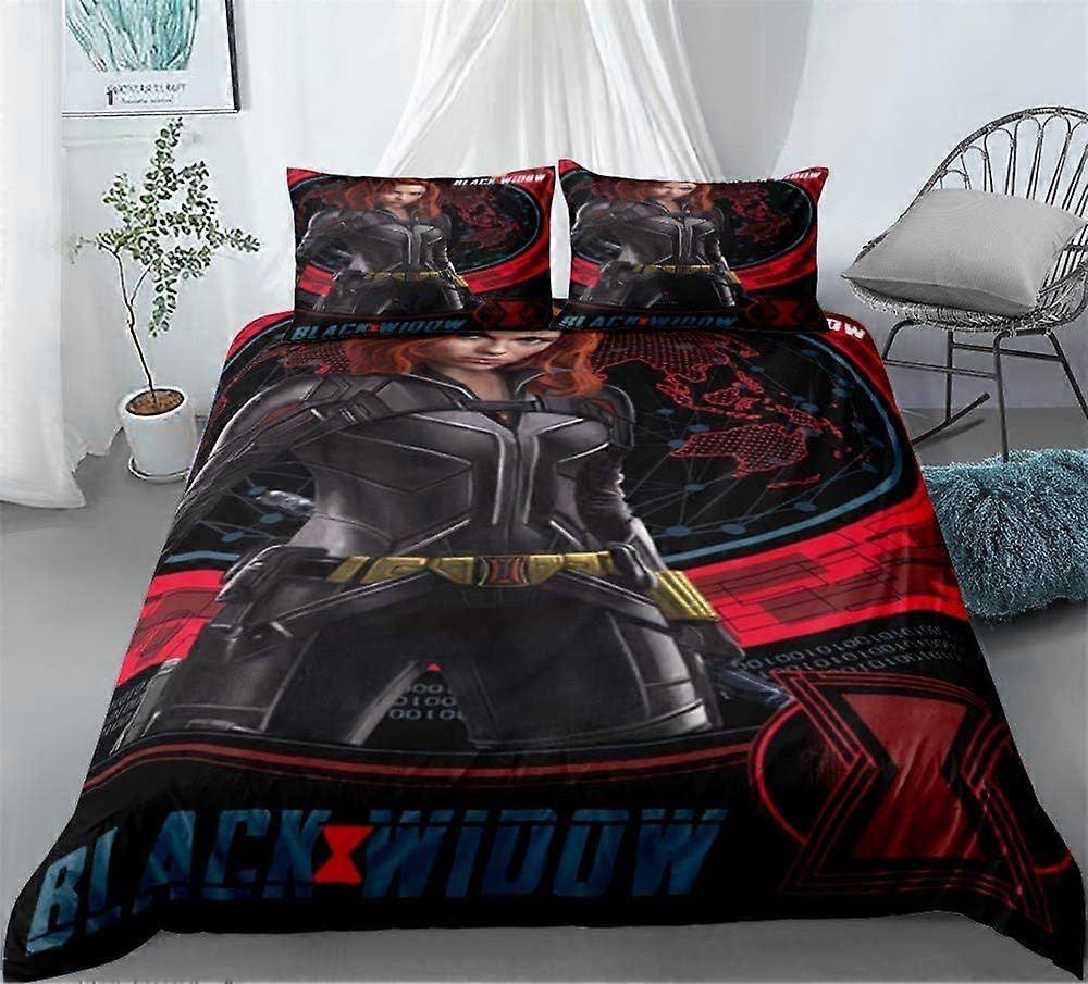 S622 Black Widow Bed Linen Set - Duvet Cover and Pillowcase Microfibre 3D Digital Print Three-Piece Bed Linen W622