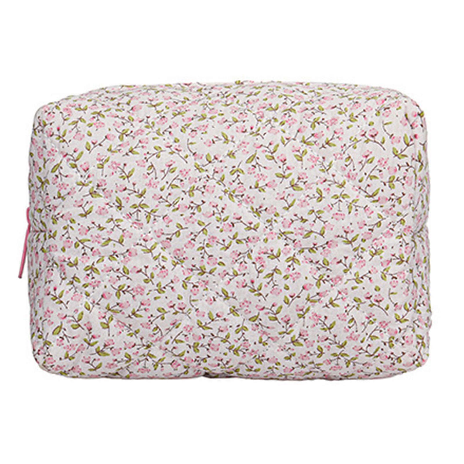 Cosmetic Bag Flower Print Cotton Portable Zipper Closure with Inner Pocket Lightweight Commute Travel Makeup Bag Earphone Key Stoarge Pouch Makrup Bag