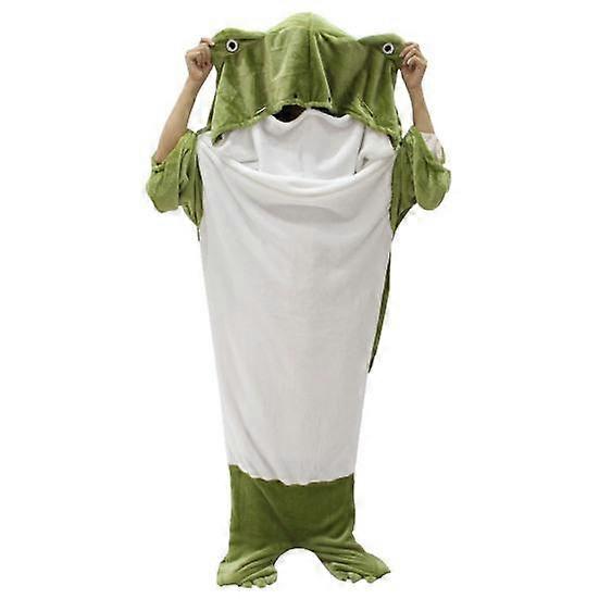 Sleeping Bag Cartoon Fried Frog Shape Contrast Color Thickened Flannel Loose Wearable Hooded Super Soft Full Protection Warm Throw Blanket Travel