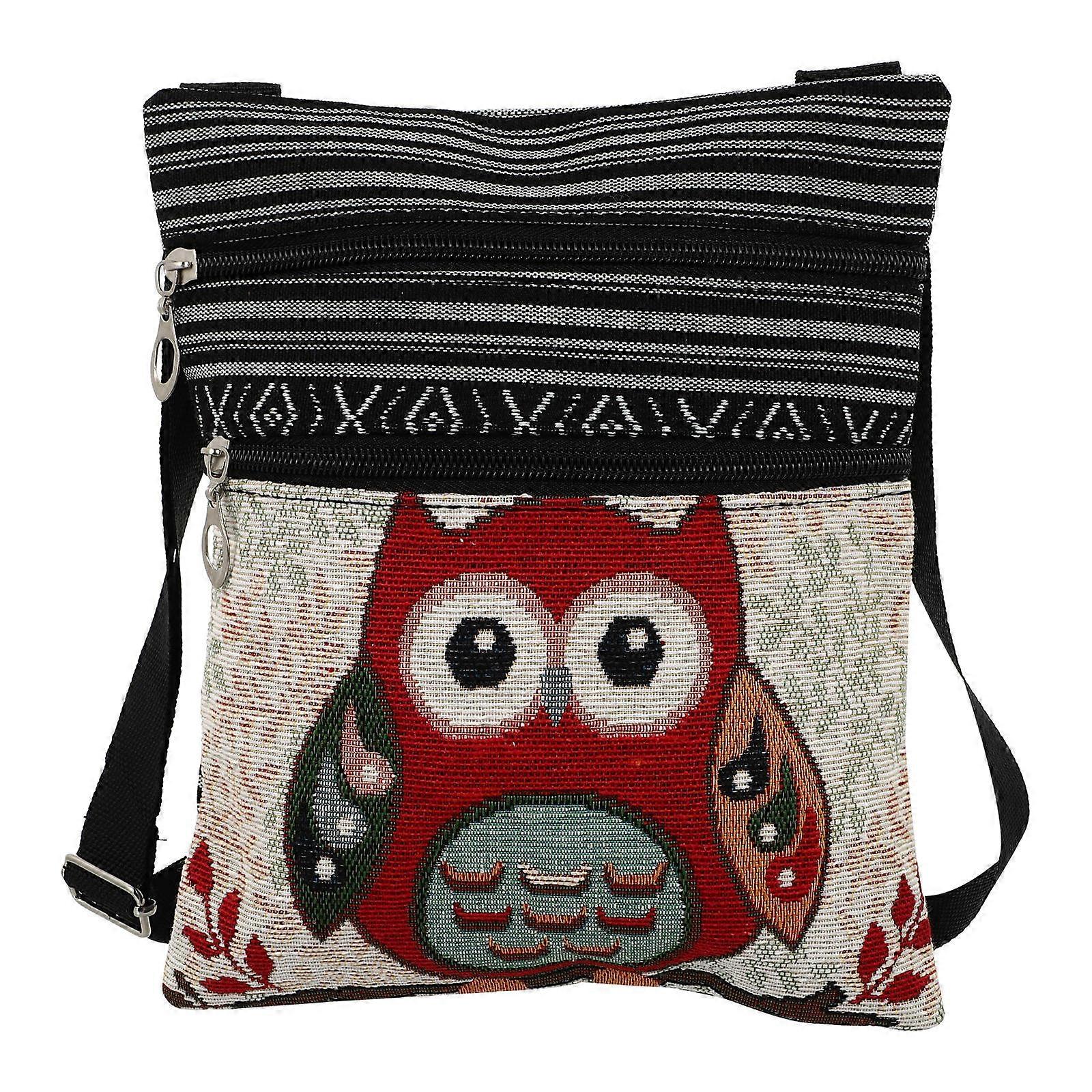 Canvas Zipper Bag Owl Printed Bohemian Bag for Women