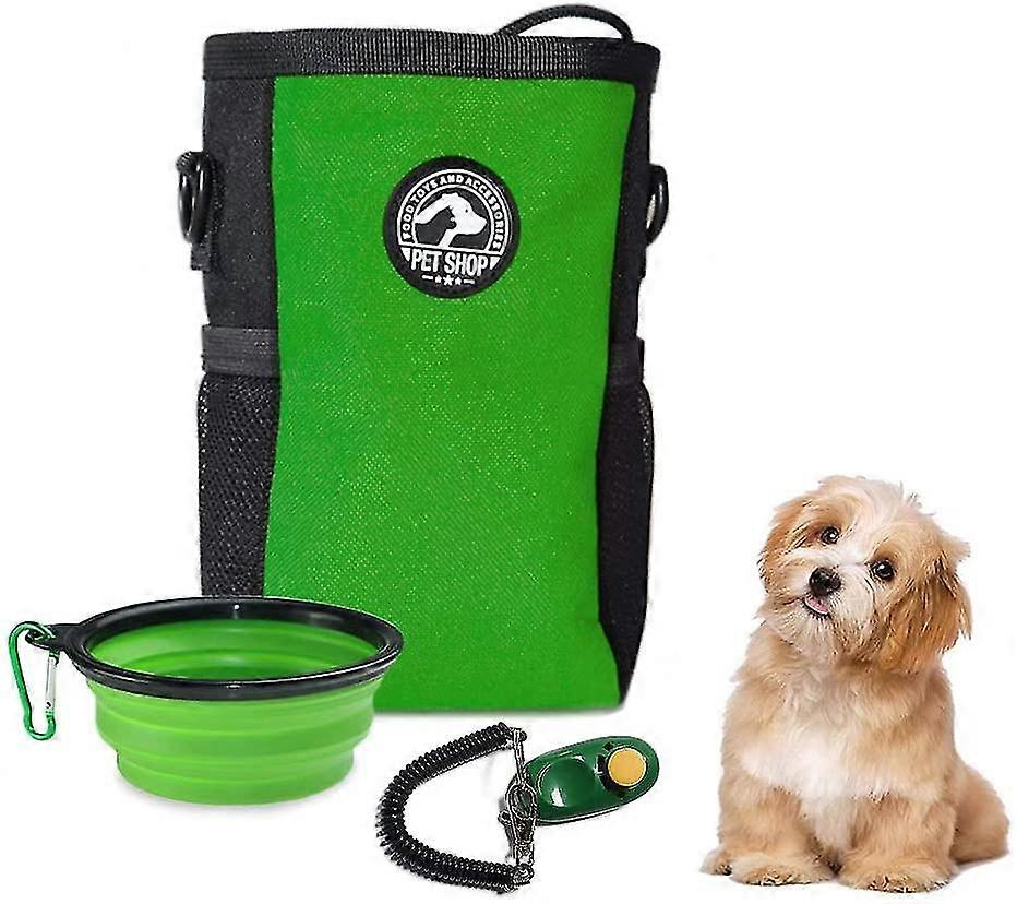 Description Choose from over 13.000 locations across the UK Prime members get unlimited deliveries at no additional cost Dispatch to this address when you check out With pockets on each side. one is perfect to hold your small changes. key or ID card. while with a customer-designed trash bag dispenser on back. its quite convenient to hold your dogs garbage bag and take it effortlessly. Adjustable waistband make this dog treat pouch attached securely around your waist.or a diagonal shoulder strap.no worry about falling off on outdoor activity. And the D-ring is designed to hold dog whistle and folding bowl. enables outside training easier. Every part of puppy treat snack bag and accessories is created with the highest quality materials. Bag is made of waterproof nylon fabric. has reinforced zippers and adjustable straps and the inner liner pulls out for easy cleaning. The package includes 1*dog training bag.1*folding bowl.1*whistle.1*Belt.1*Shoulder strap.Collapsible dog bowl is 13 x 5.5cm. made of BPA-free silicone for your pets health. dog bag is 12*7.5*19cm. All these accessories are elaborately selected to offer our customer a fully-equipped dog training package. You can not find such great price dog training kit on Amazon from other sellers. Definitely BEST PRICE dog training kit on Amazon. All items of good quality. you will love the package when you receive it