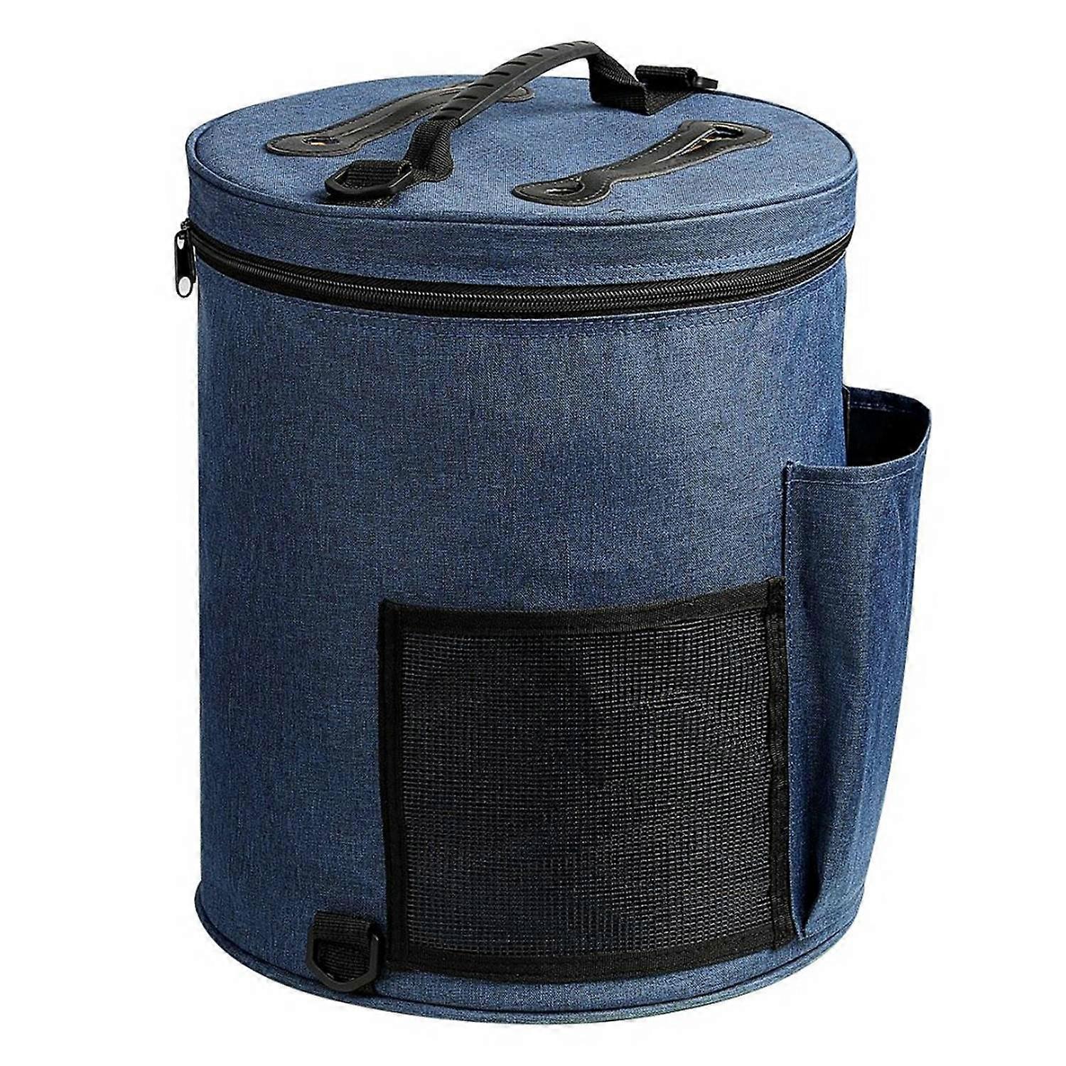 Knitting Bag Large Capacity Multi Pockets Column Shape Zipper Opening with Handle Keep Neat Great
