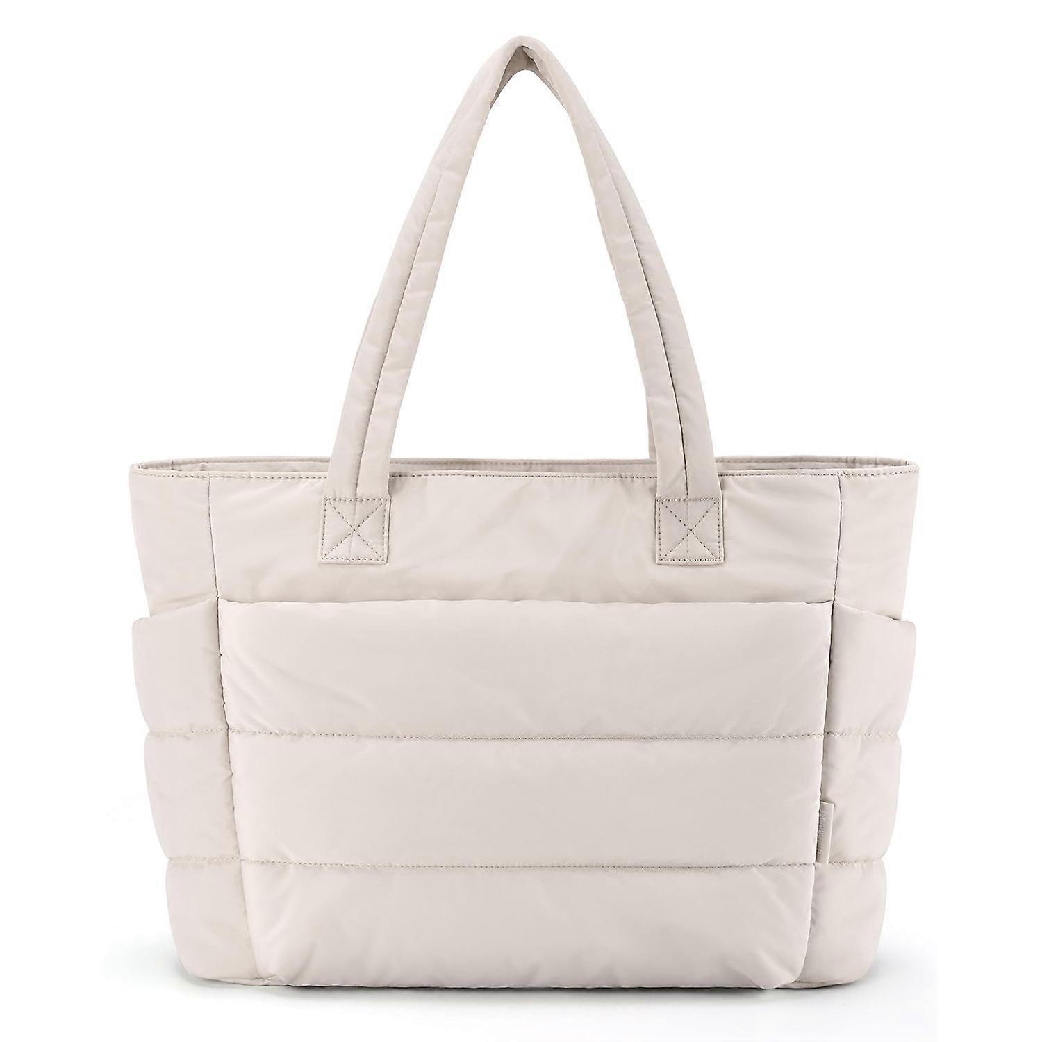Quilted Tote Bag Women Padded 15.6 Inch Laptop Shoulder Bag Travel Handbag for Work Shopping Gym