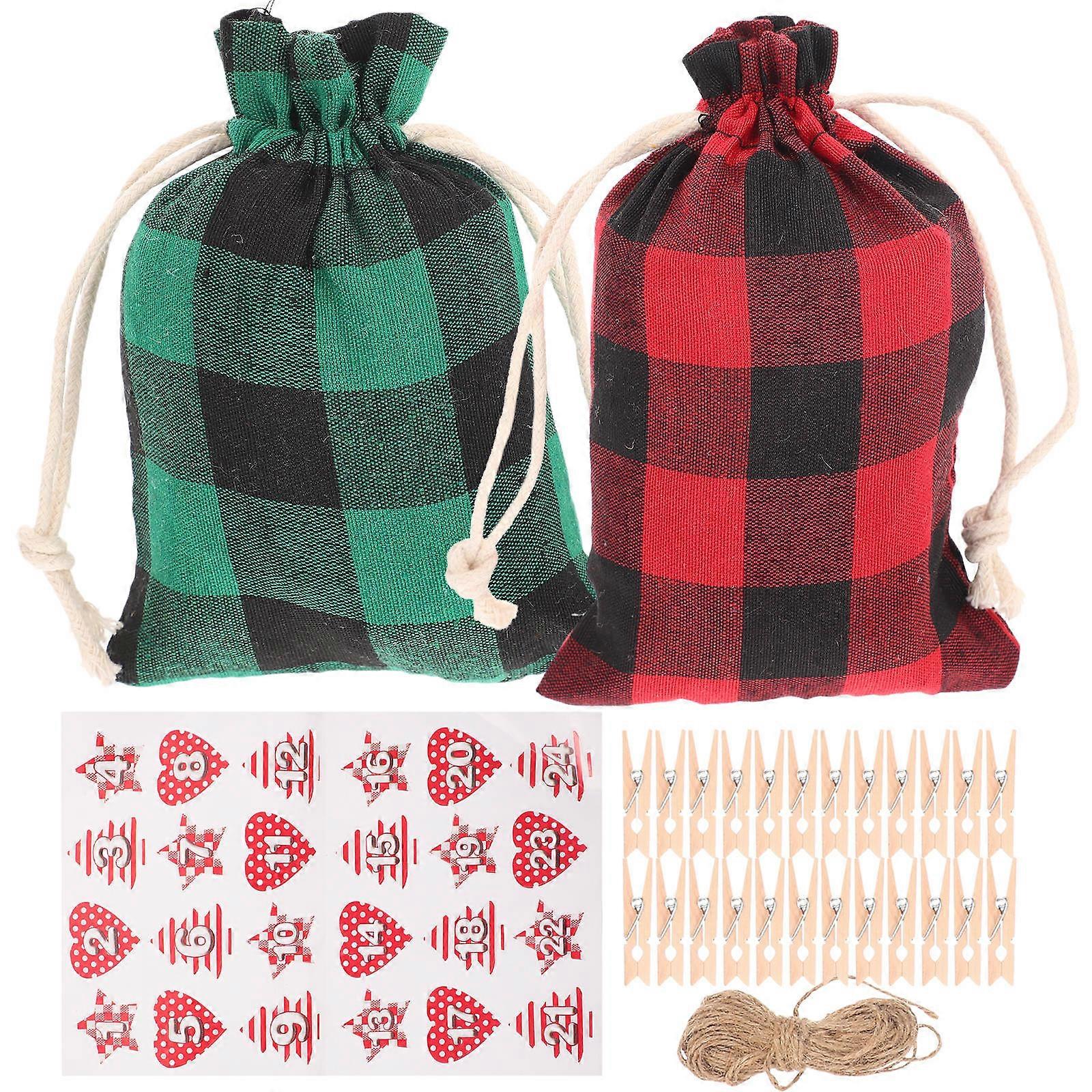 Christmas Drawstring Gift Bags Candy Bags with Rope and Clips 5Sets for Decor
