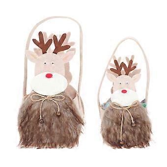 Christmas Candy Storage Bags Lightweight Felt Baskets with Fawn Design for Desserts and Small Items, Portable Holiday Candy Holders with Handle